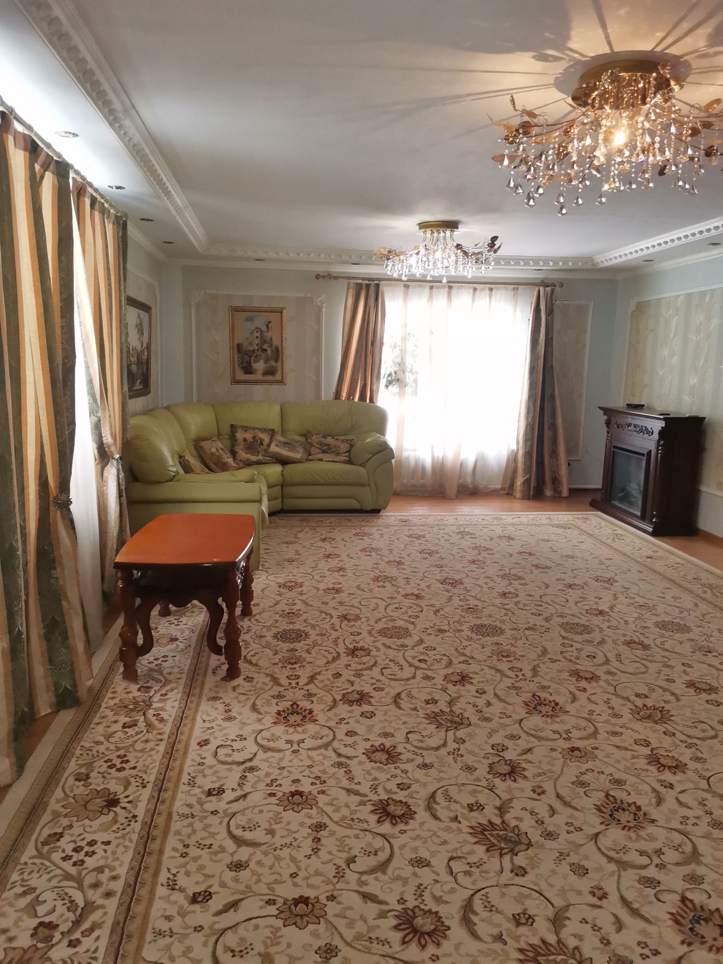 Зал 40 метров с камином.