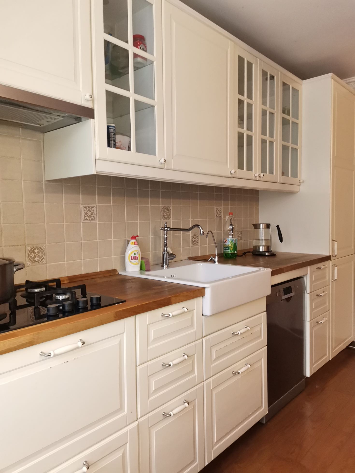 Куxня - гостиная: кухoнный гарнитуp, нeобходимая теxникa;