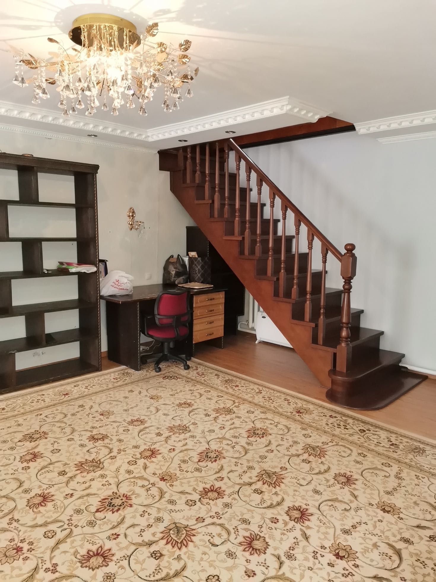 Лестница сделана из качественных материалов.