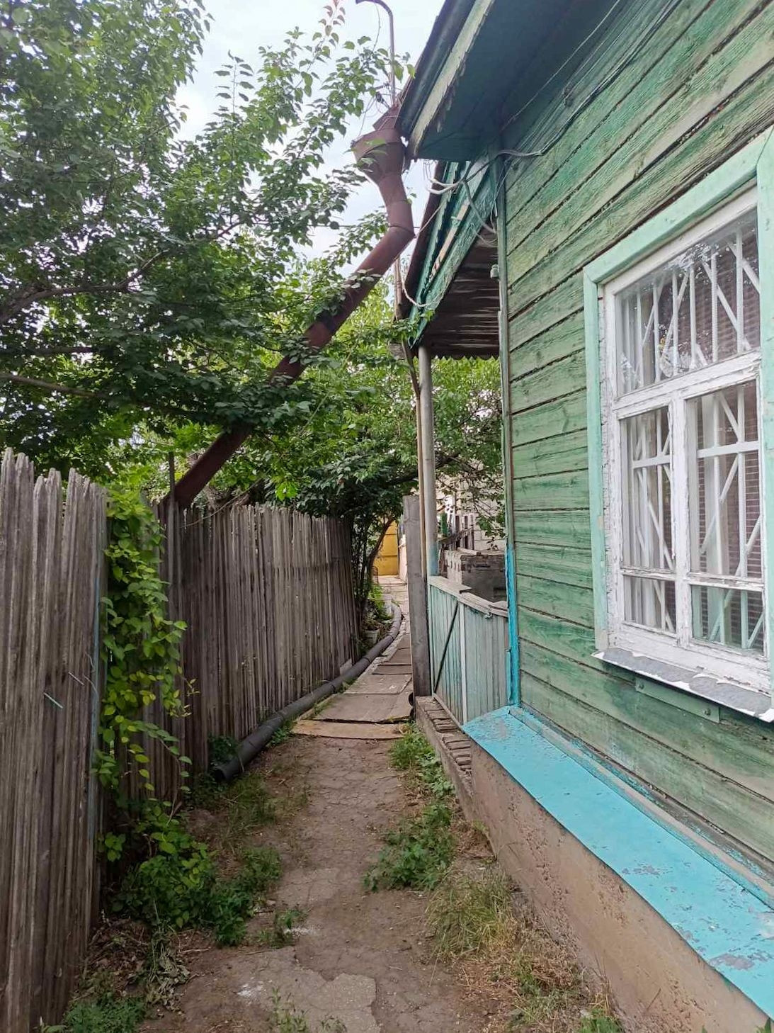 ОбЩИЙ вход на участок, ОБЩАЯ стена с одним соседом, у каждого свой отдельный вход в дом;