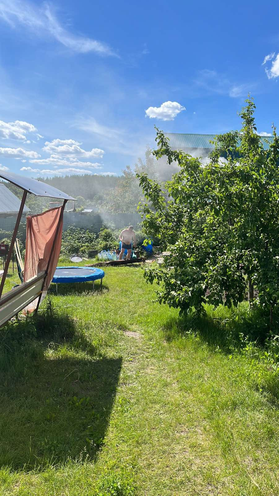 Автополив тёплой водой из речки (улитки) без участия человека через день по два часа вечером без подключения к электричеству. (На выходные можно закрыть краны)