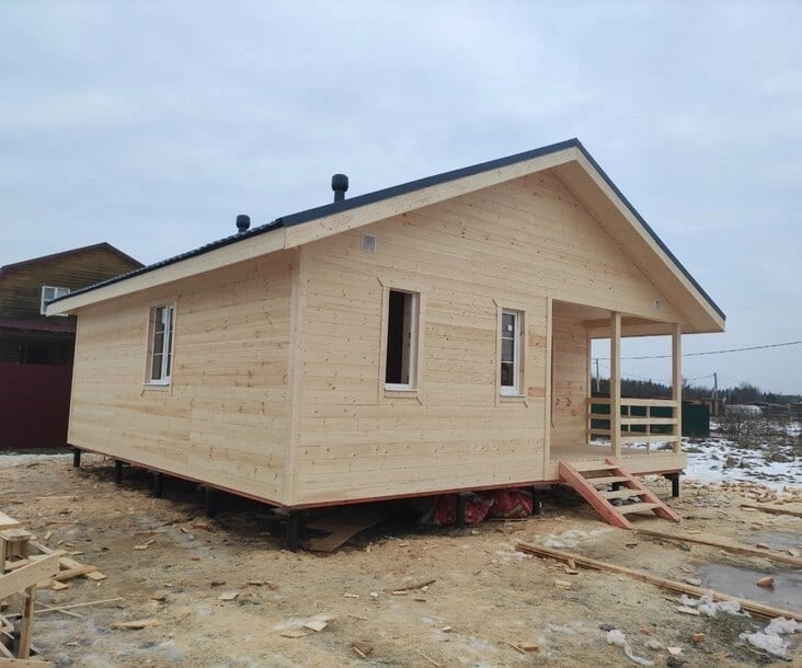 Наружная отделка: Имитация бруса, без покраски.