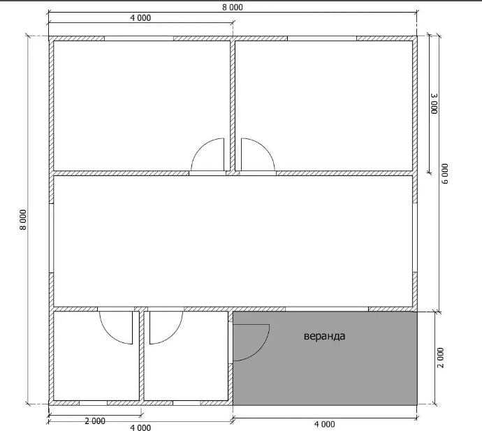 Внешние размеры: 8х8 м