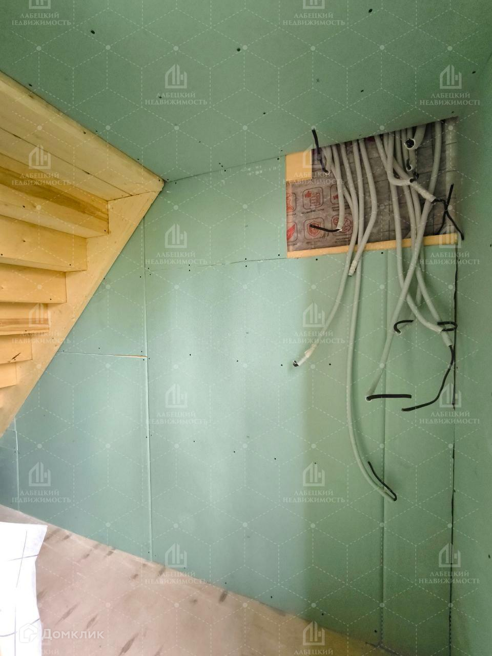 Произведена разводка электричества по дому. Выведены трубы водоснабжения к скважине и выведены трубы канализации к выгребной яме.