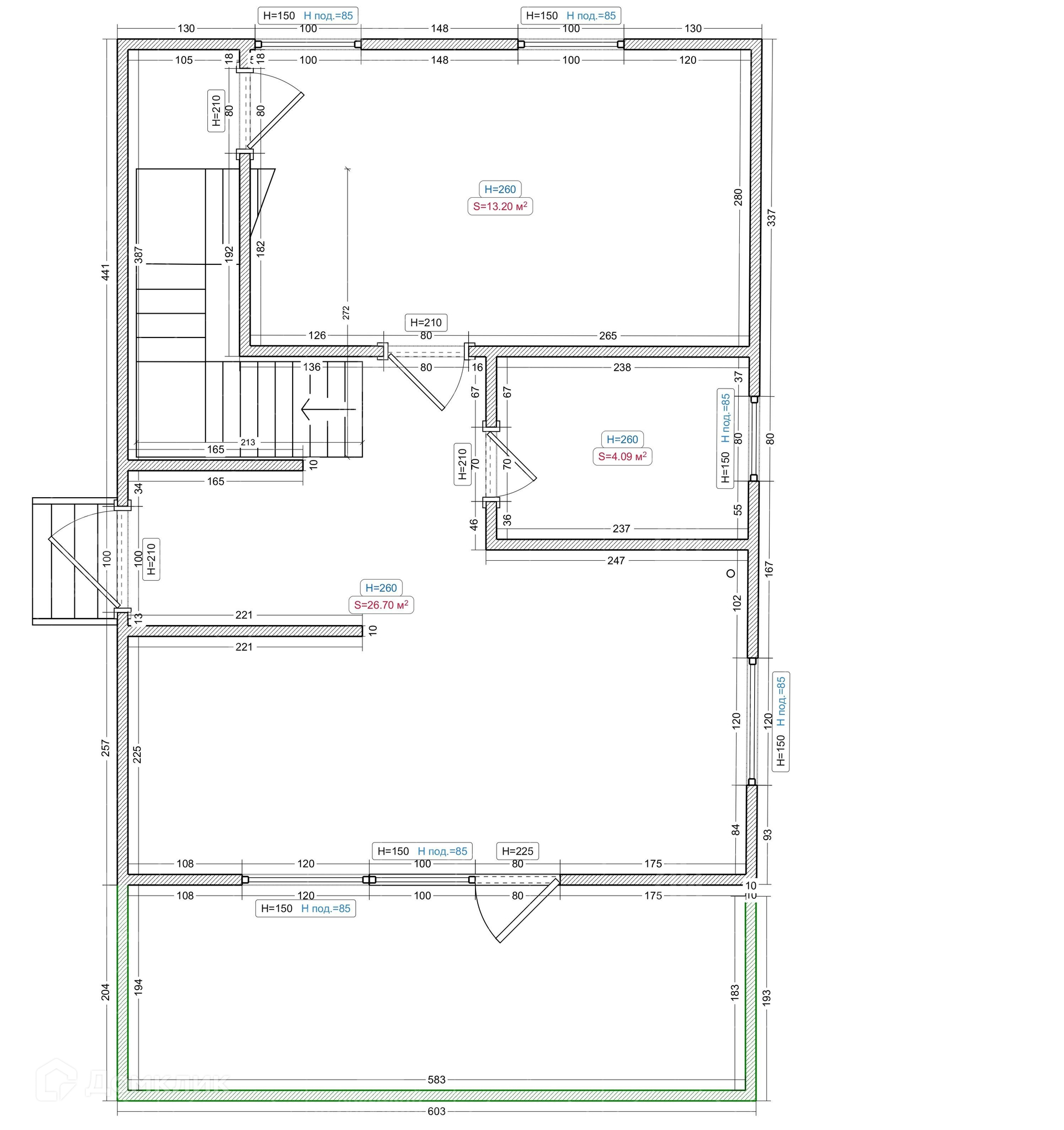 Дом установлен на железобетонных сваях (глубина забивки свай – 2 м).