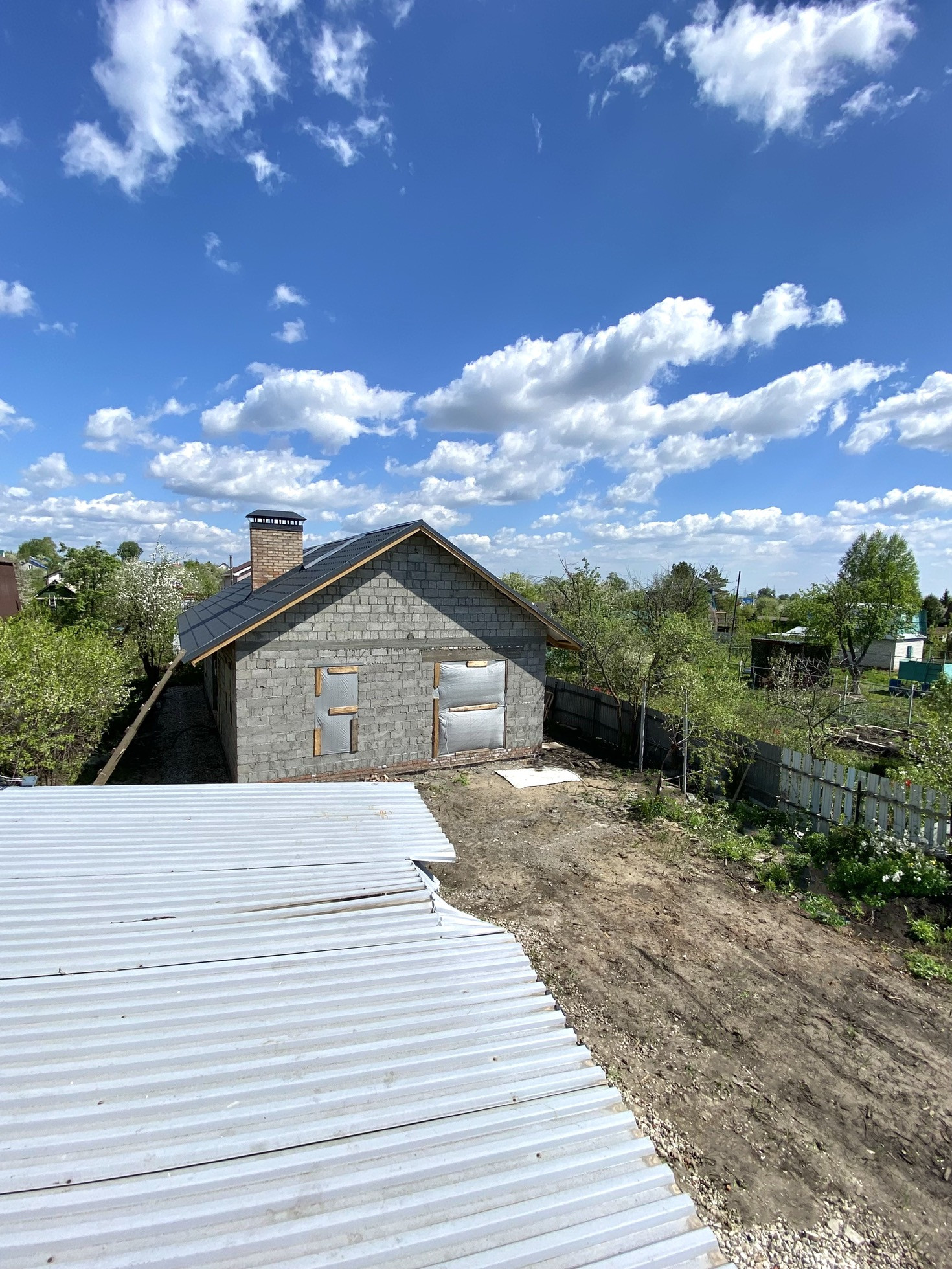 Дом строил аккуратно, стараясь не повредить плодовые деревья, Яблоня, черешни, сливы, клубника, малина.