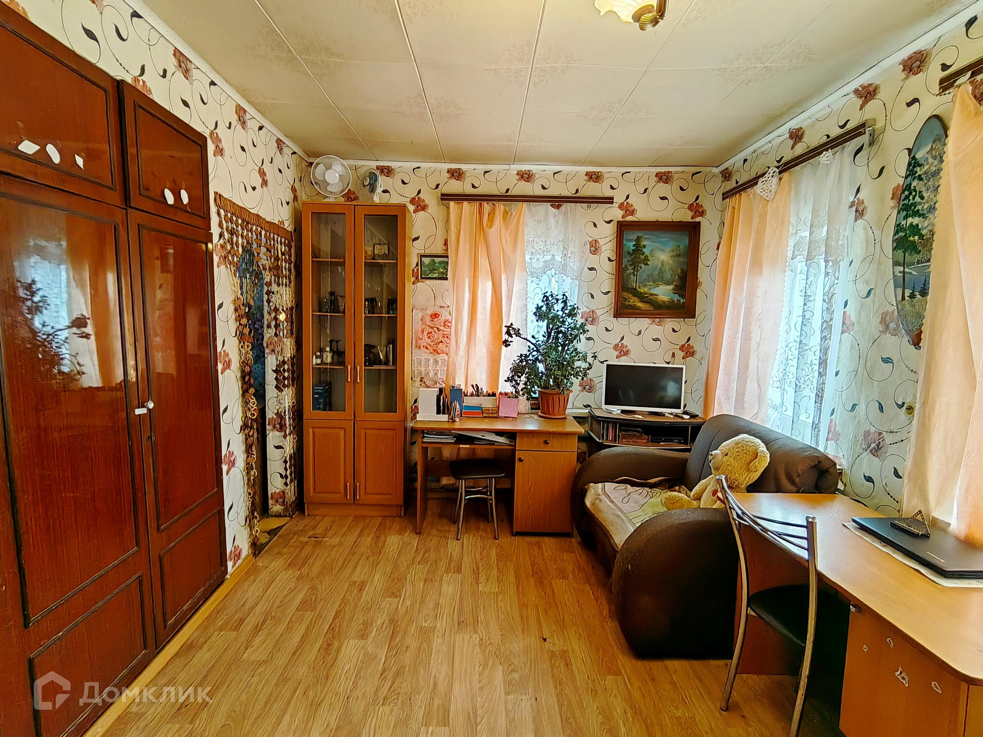 По документам участок 5 соток, по факту 6. Дом срубовой, теплый, внутри 4 комнаты: 15,3 м2, 11,1 м2, 10,4 м2 и 7,2 м2, квадратная кухня 12,3 м2, веранда 4,9 м2. Много окон на все стороны делает дом светлым и уютным. Проведены электричество, газ, отопление, есть вода на территории.