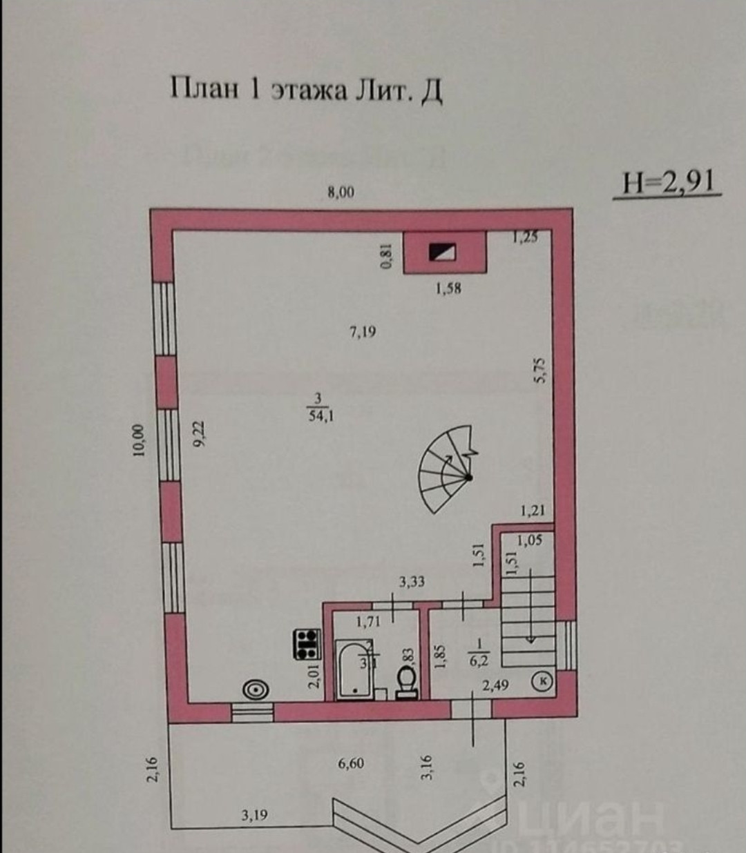 На участке: ½ жилого дома, площадью 51 кв.м., требующий ремонта (в доме имеется газ, центральная вода, свет);