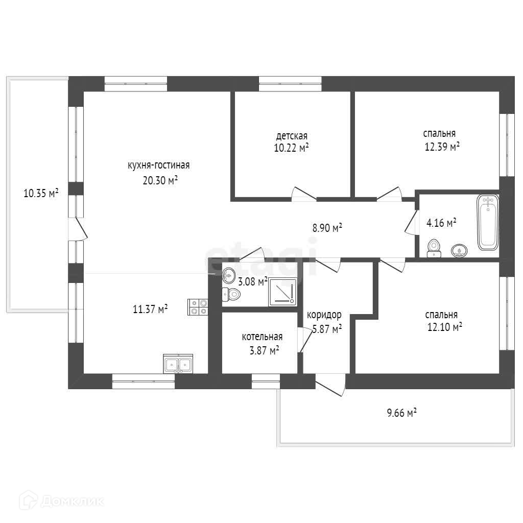 Общая площадь 97.3 м2