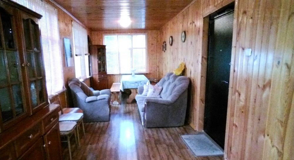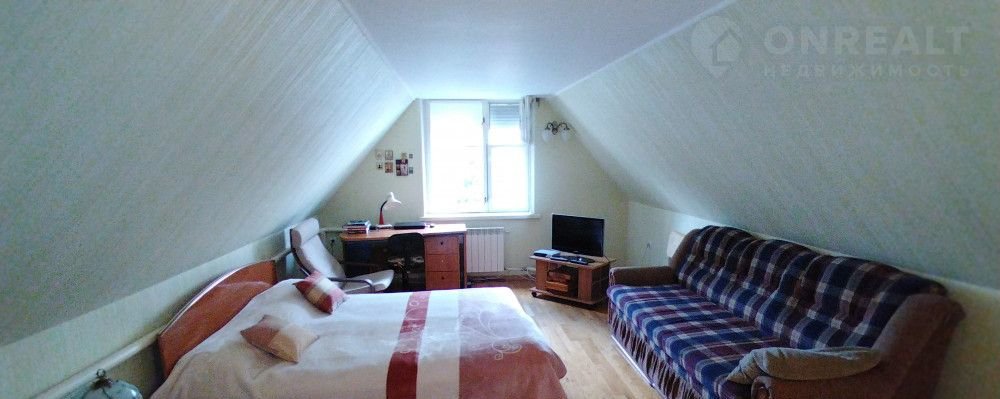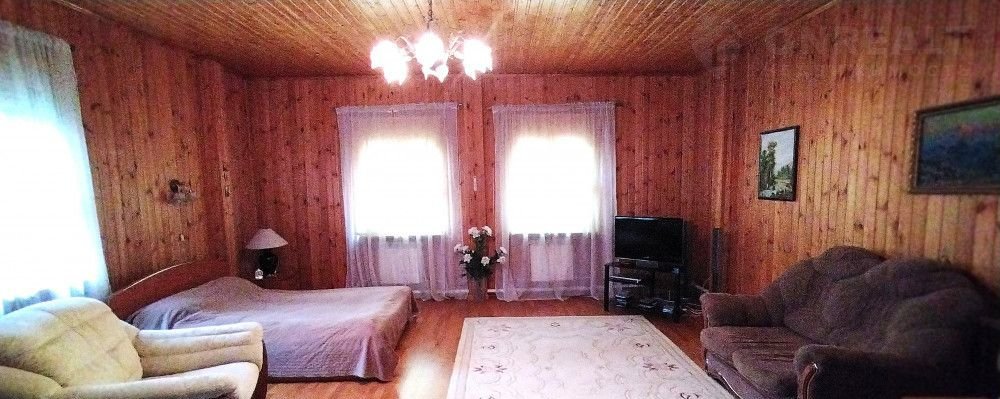 На 1-м этаже дома большая веранда, кухня, жилая комната, санузел, сауна и котельная. На втором этаже: две спальни, с/узел. К дому пристроен гараж на 2 автомобиля.