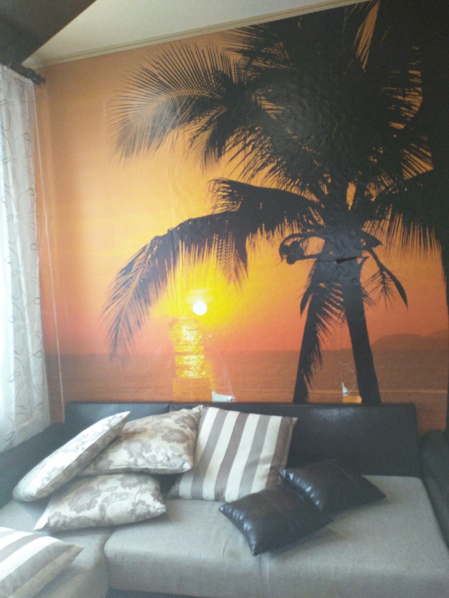 Комната чистая, уютная, тёплая (солнечная сторона), радиаторы нового поколения (можно добавить). Окно ПВХ, жалюзи оставляю (они здесь необходимы). Дизайнерский натяжной потолок, цвета - топлёное молоко с шоколадом, имеет 10 лампочек. Так же есть БРА (настенный светильник), фотообои, линолеум меняла в 2013 году, железная дверь. Можете поставить электроплиту.