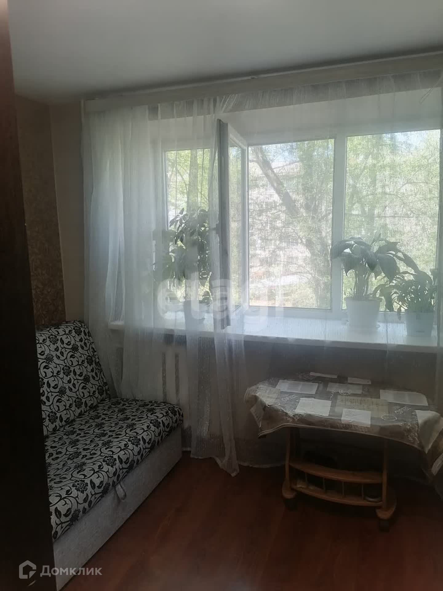 Состояние комнаты - жилое, современный ремонт, пол отделка - ламинат, стены - обои, потолок натяжной - сатин, установлено окно ПВХ, установлен кондиционер, вид из окна во двор на зеленую зону.