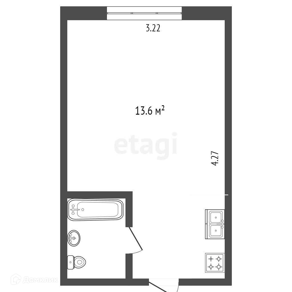 Общая площадь комнаты - 13,6 кв м.