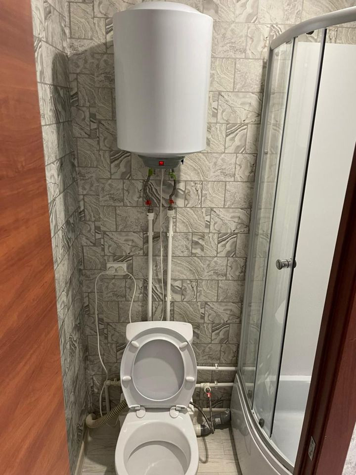 Сделан новый ремонт, установлено пластиковое окно, выведена вода, установлен унитаз и душевая кабина. Потолки натяжные.