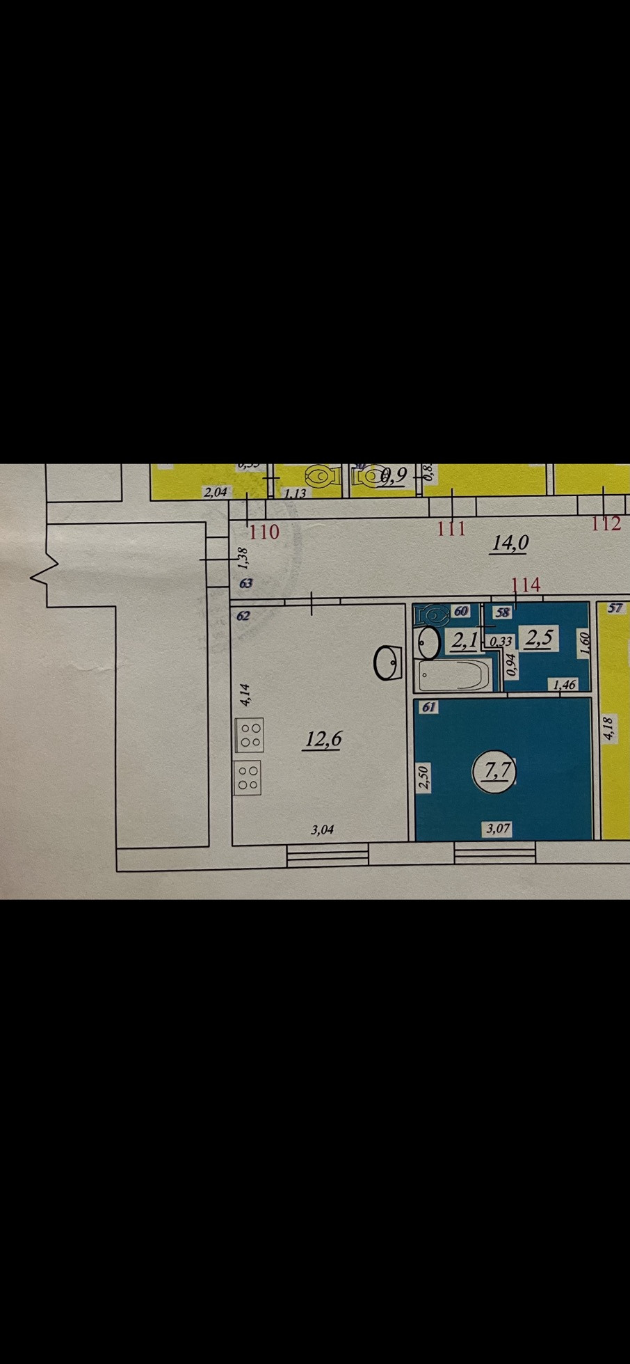 Жилая площадь 7.7 м2