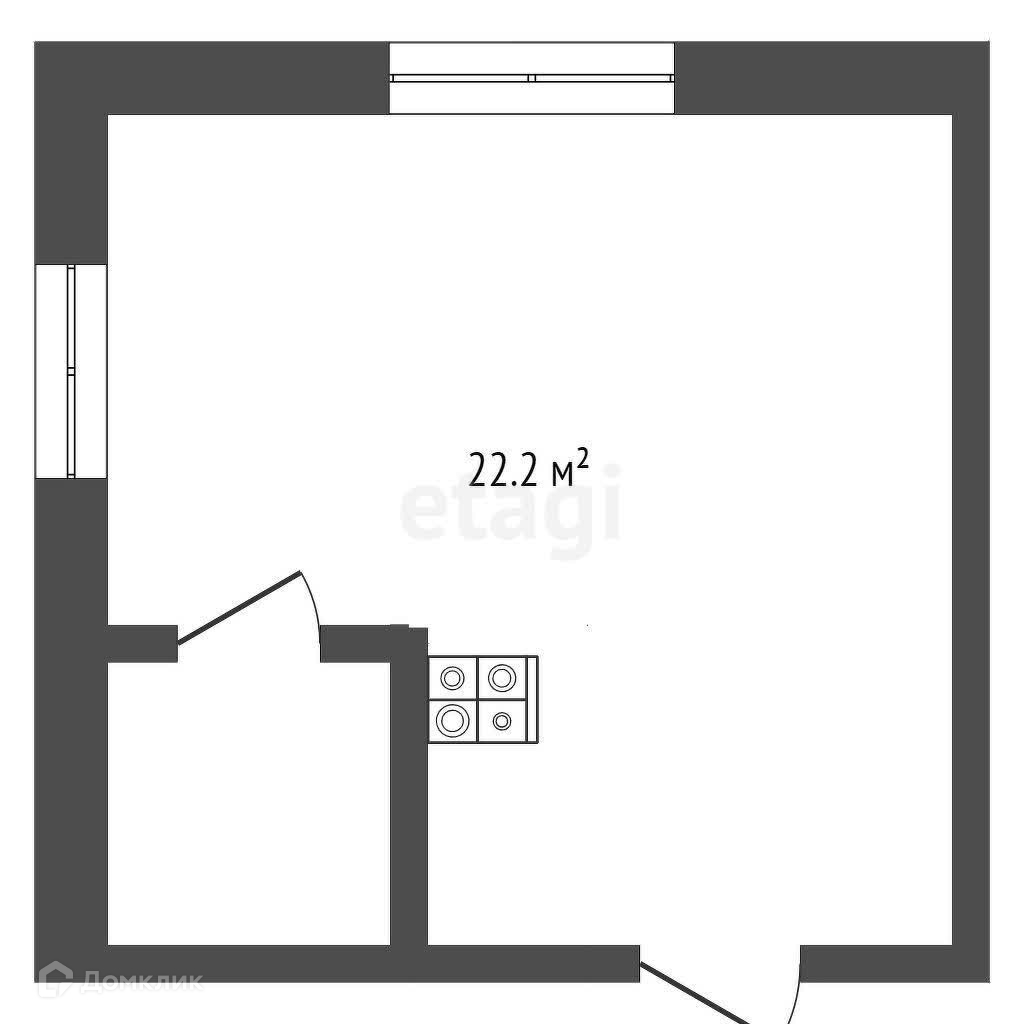 Общая площадь 22.2 м2
