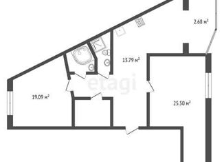 Продаю двухкомнатную квартиру, 69 м2, улица Врубеля, 17