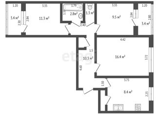 Общая площадь: 74.2 м2