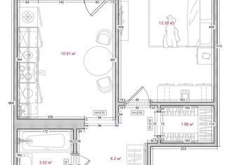Общая площадь: 52.2 м2