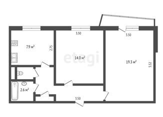 Общая площадь: 33.2 м2