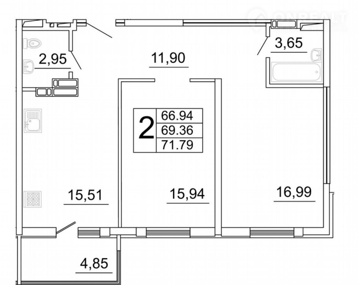 Общая площадь 71.9 м2