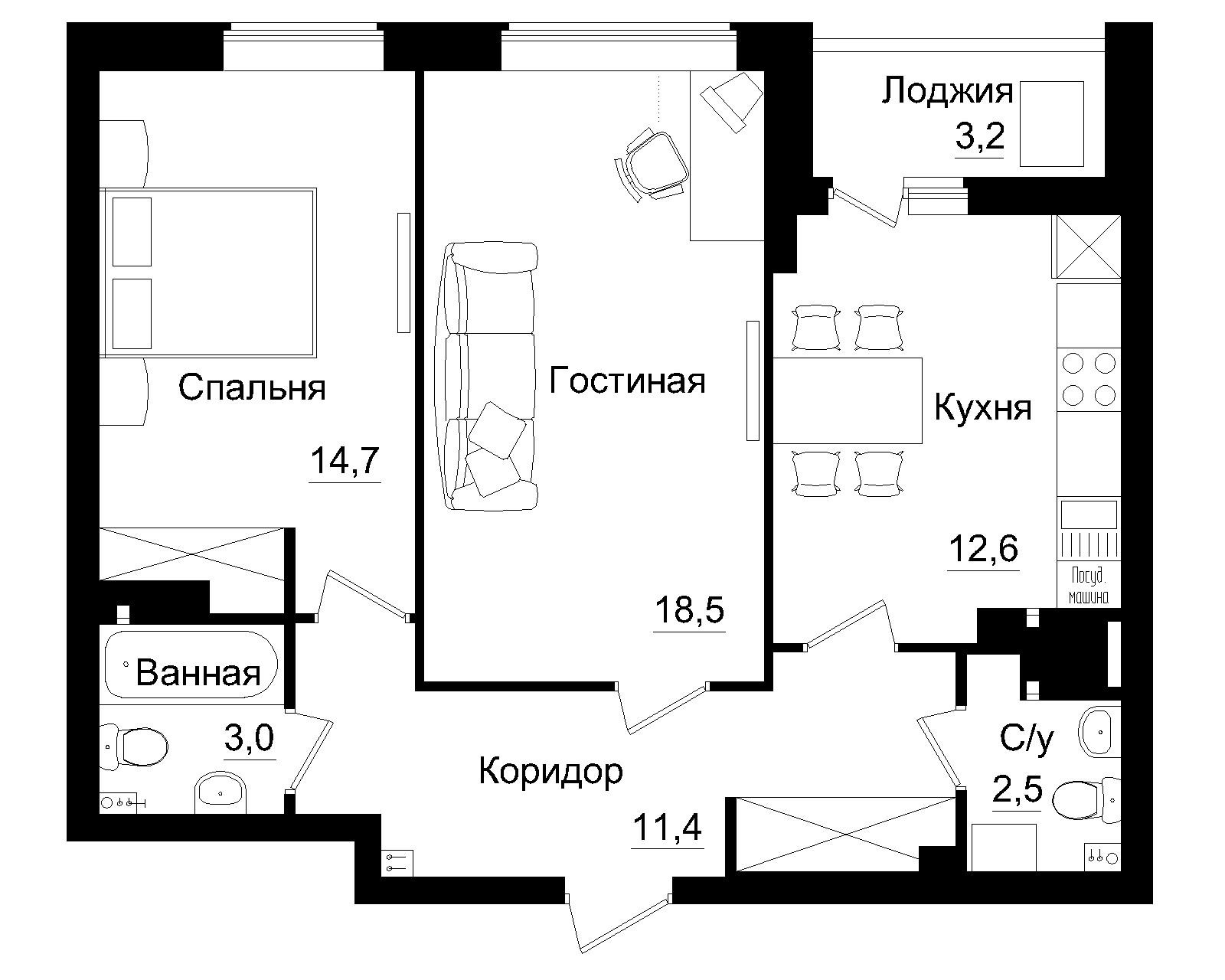 Площадь кухни 12.6 м2