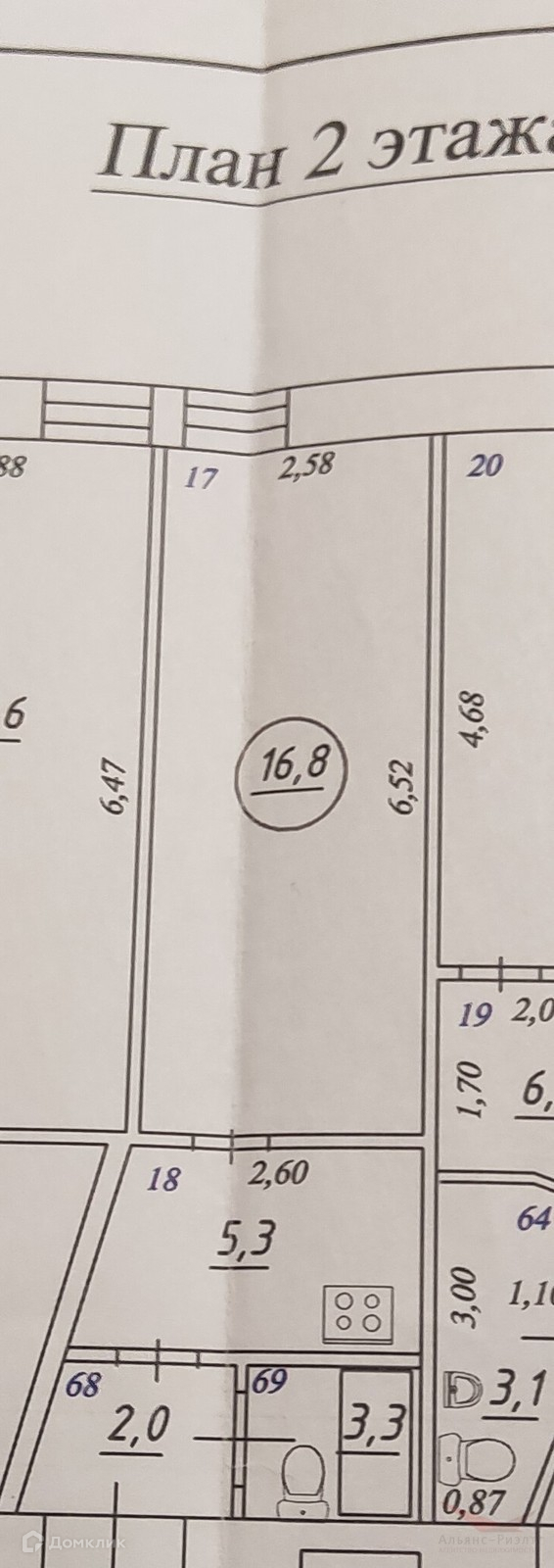 Продаётся комната (доля в праве), 2/2 этаж, кирпич (статус памятник)