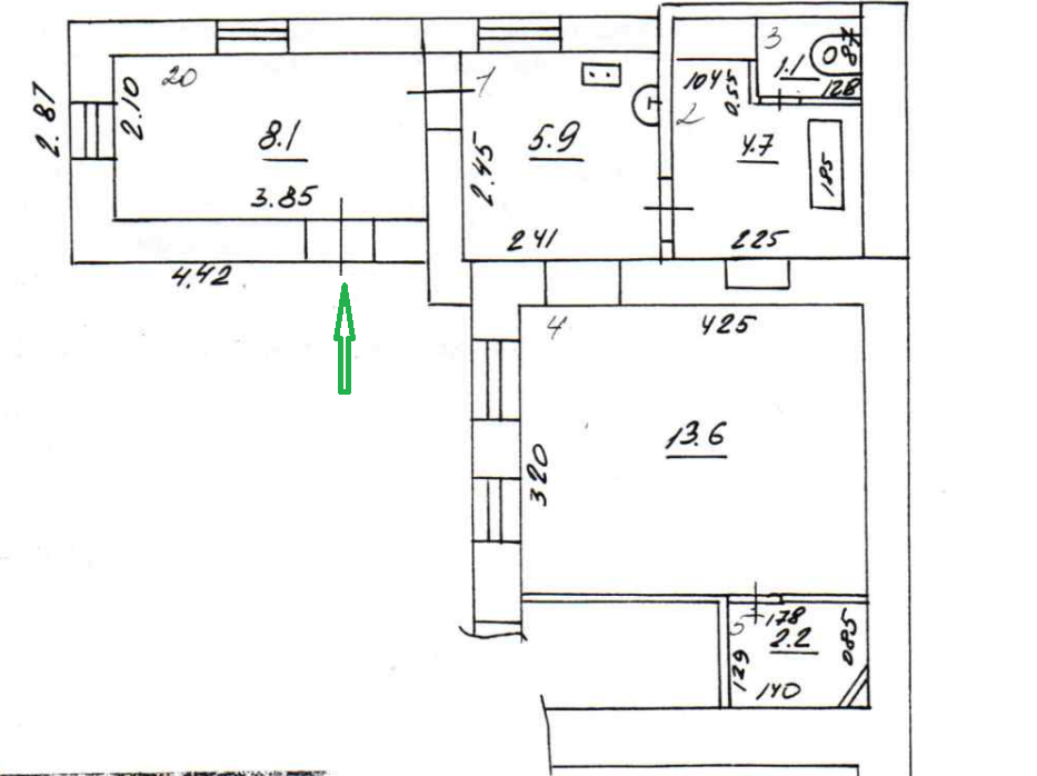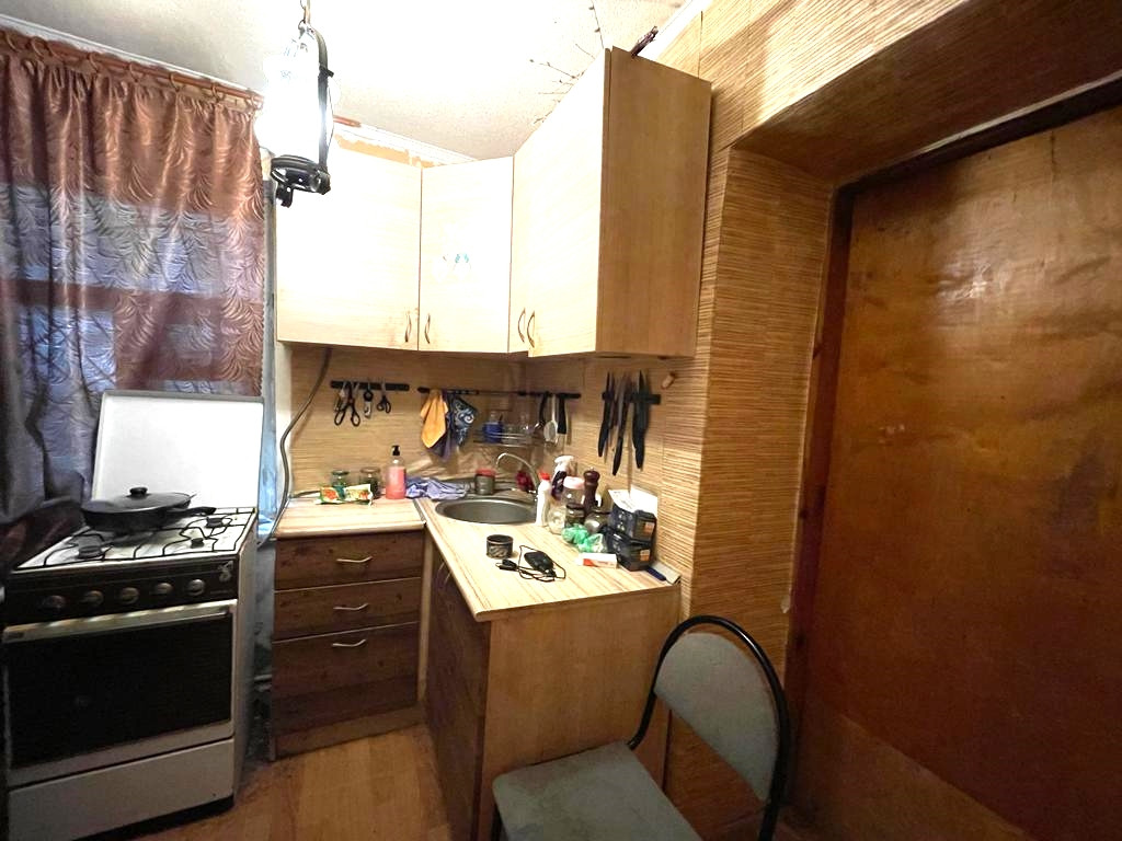 Жилая площадь 13,6 кв.м. кухня 5,9 кв.м. прихожая 8,1 кв.м. Совмещённый санузел. Горячая вода – колонка, отопление -центральное.
