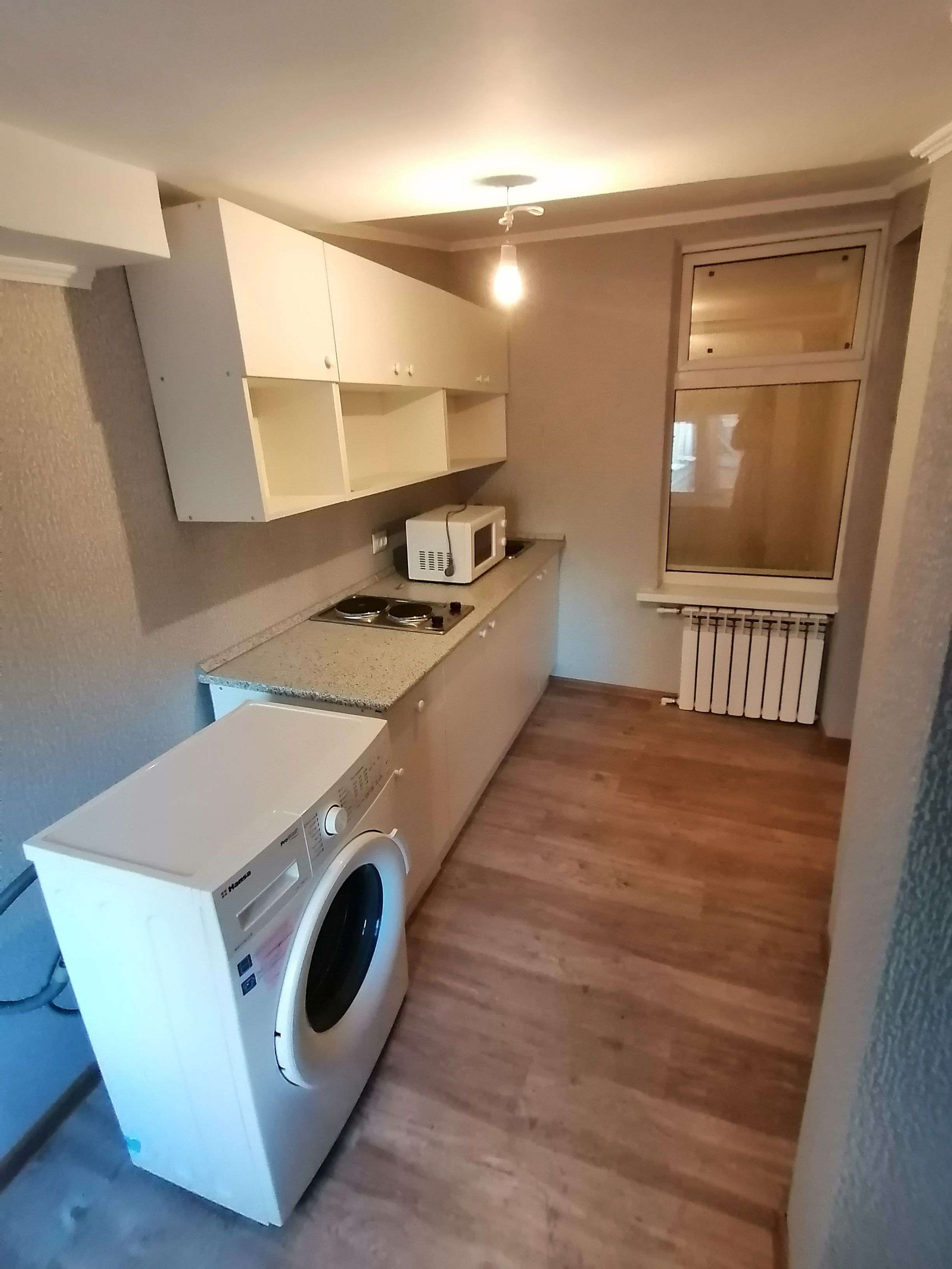 На кухне  - новый кухонный гарнитур, с новой мойкой и смесителем (остается!).