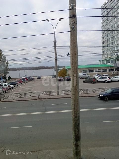 Парковка за шлагбаумом во дворе. В квартире простой косметический ремонт, поставили хорошую дверь и крутые стеклопакеты с тепло и шумоизоляцией, чтобы даже зимой от Волги не было холода, хотя отопление зимой очень хорошее и окна открываем.