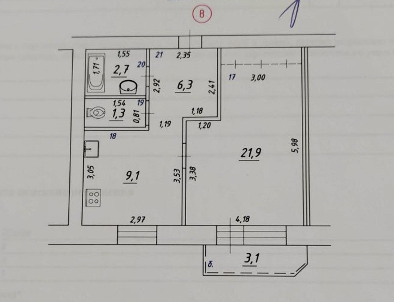 Балкон, лоджия 1 балкон
