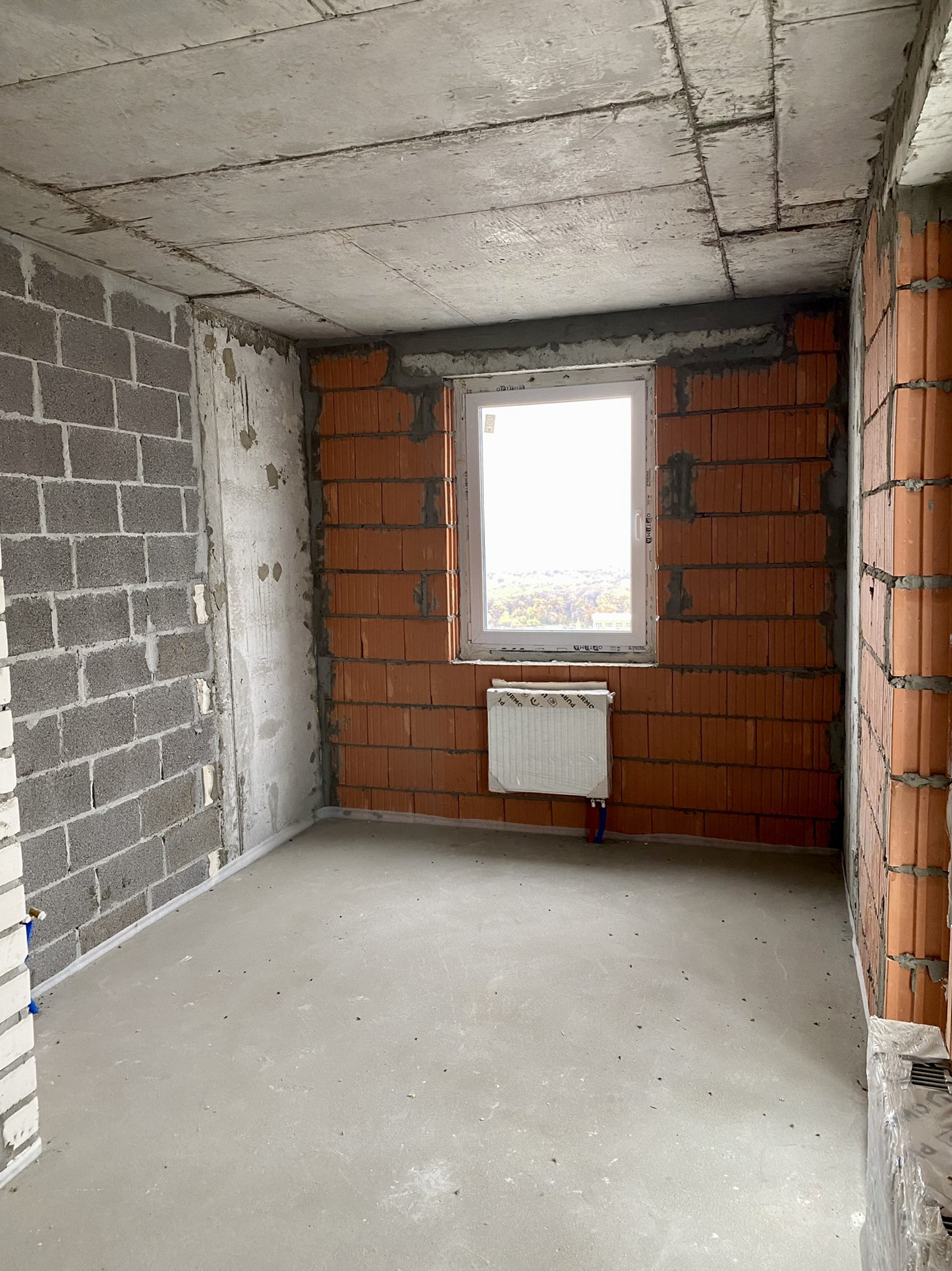 Выполнена черновая отделка от застройщика (Сухая стяжка, радиаторы отопления, медная проводка, окна ПВХ, панорамное остекление балкона, входная металлическая дверь, счетчики на воду, свет и отопление, отопление автономное).