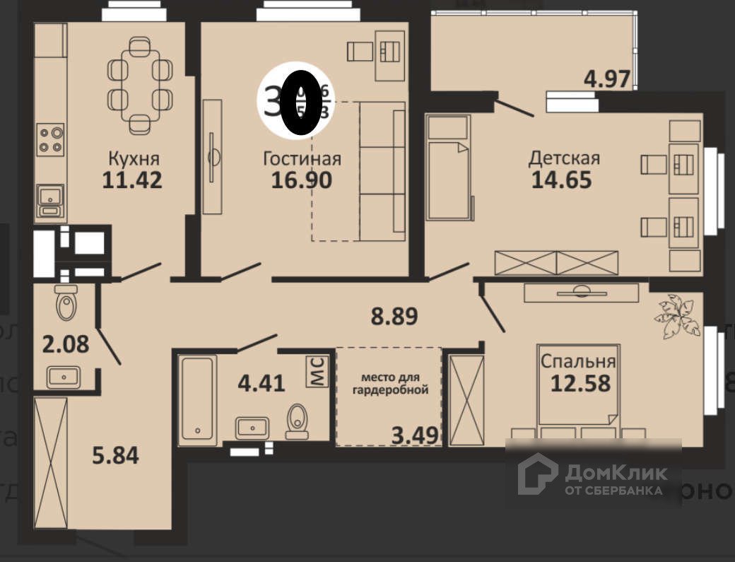 Количество комнат 3