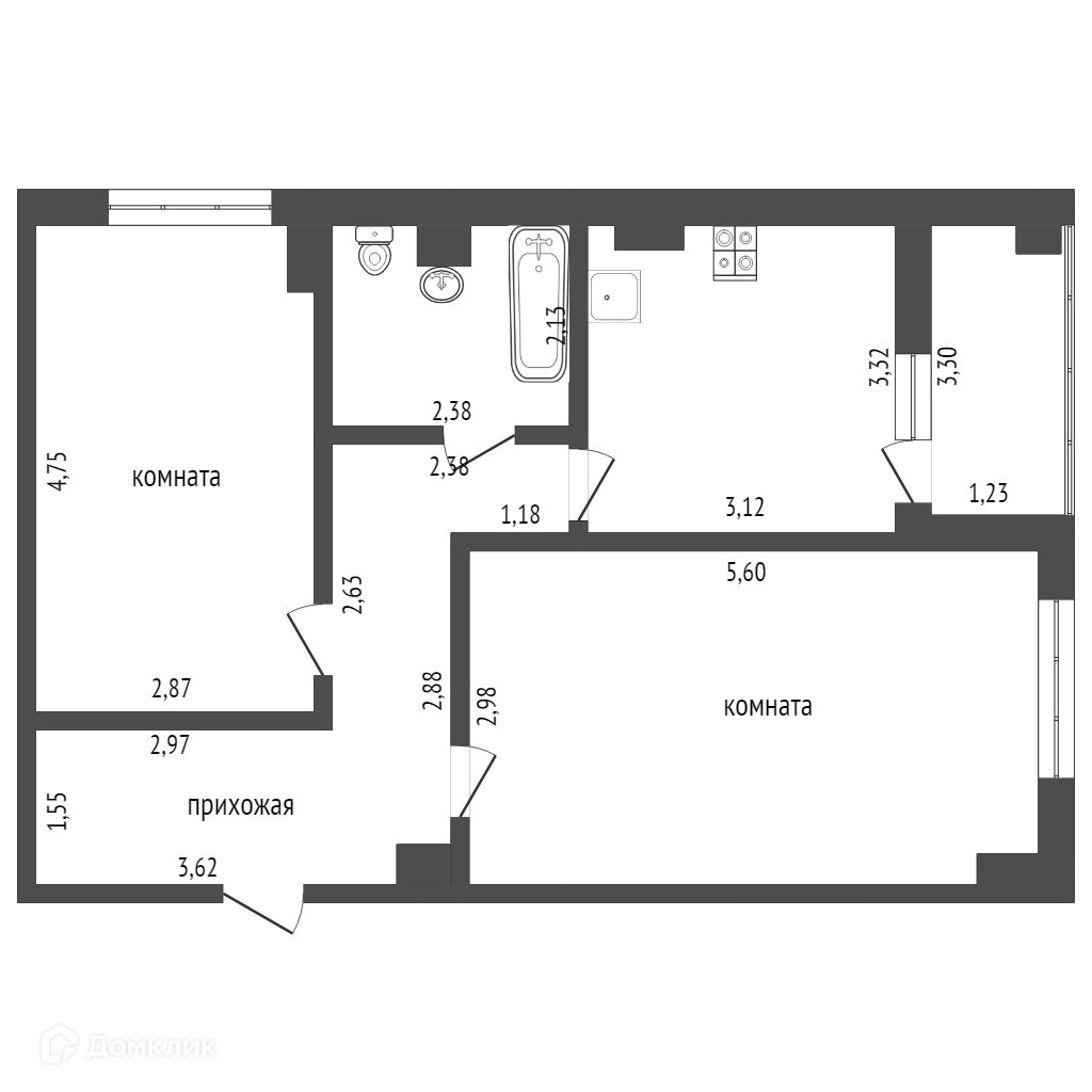 Общая площадь 60 м2