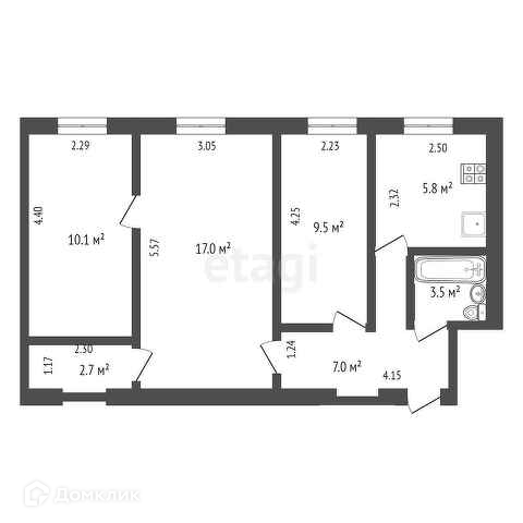 Общая площадь 55.6 м2