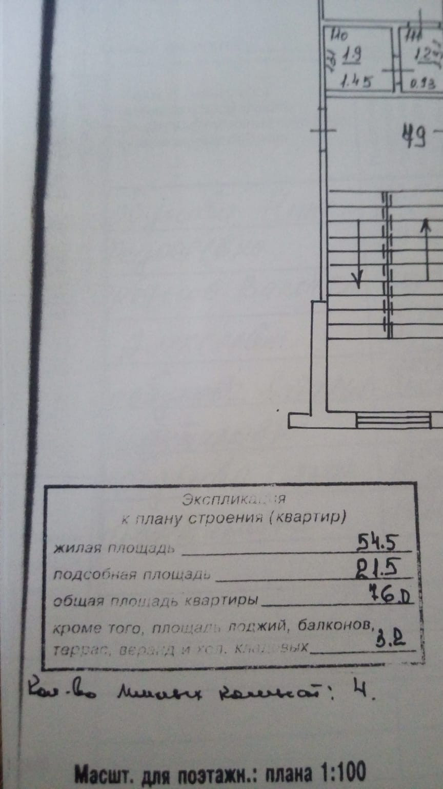 Жилая площадь 54.5 м2