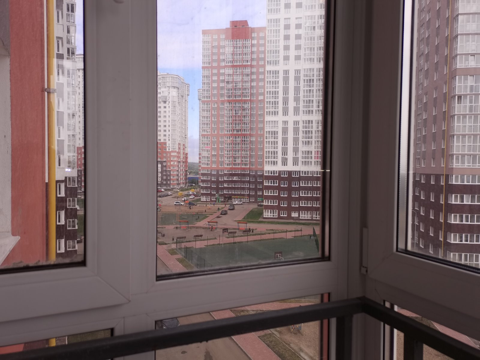 Окна из квартиры во двор, соседний дом довольно далеко.