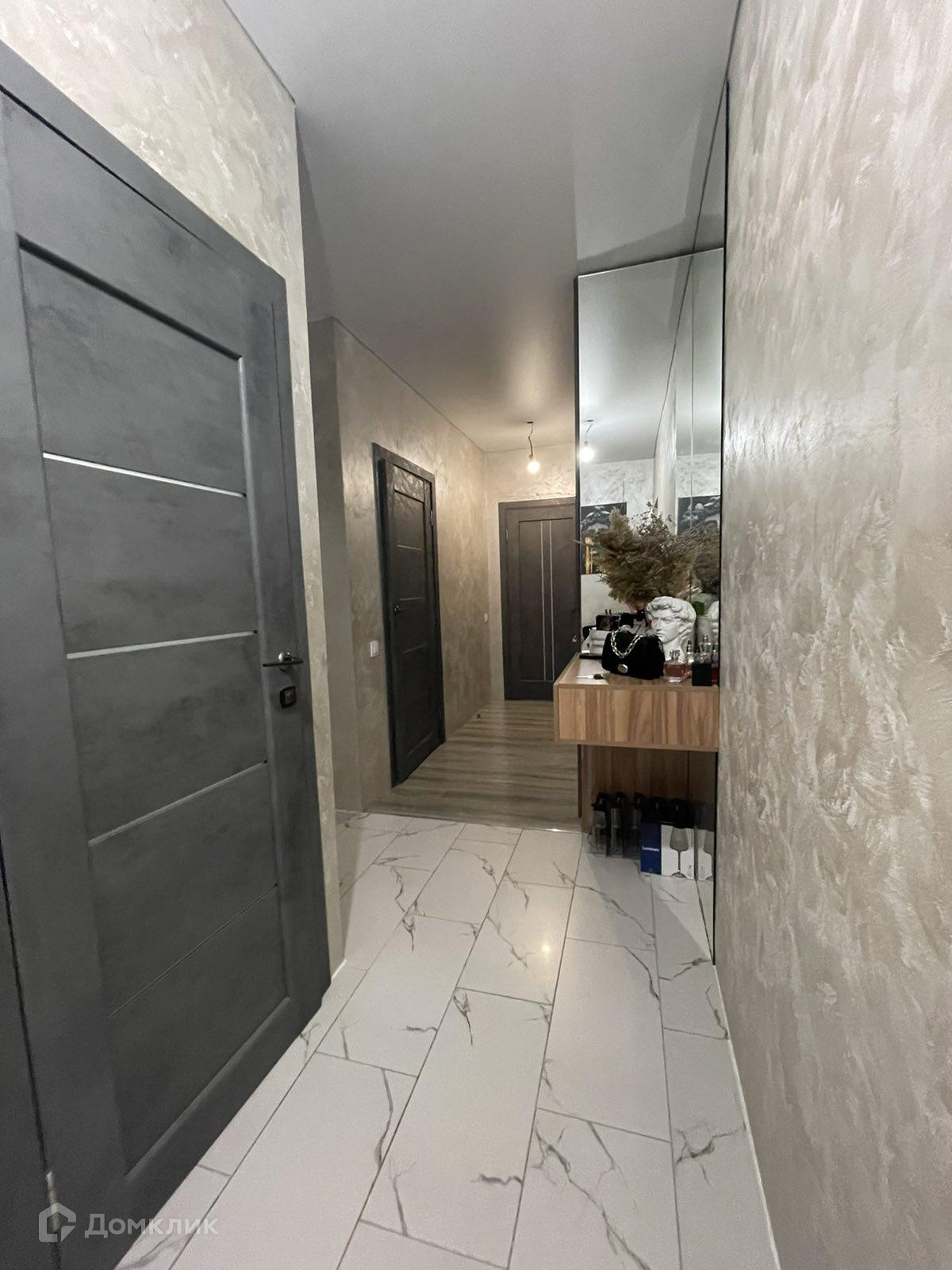 Квартира в отличном состоянии, ремонт делали для себя с использованием хороших и качественных материалов. На стенах декоративная штукатурка, на полу в коридоре и кухне-гостинной плитка, в комнате ламинат, натяжной потолок, одинаковые, в одном стиле двери, с\\у весь в плитке разных вариантов. Смотрится красиво и дорого.