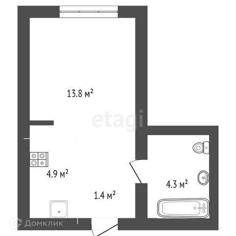 Общая площадь 24.4 м2