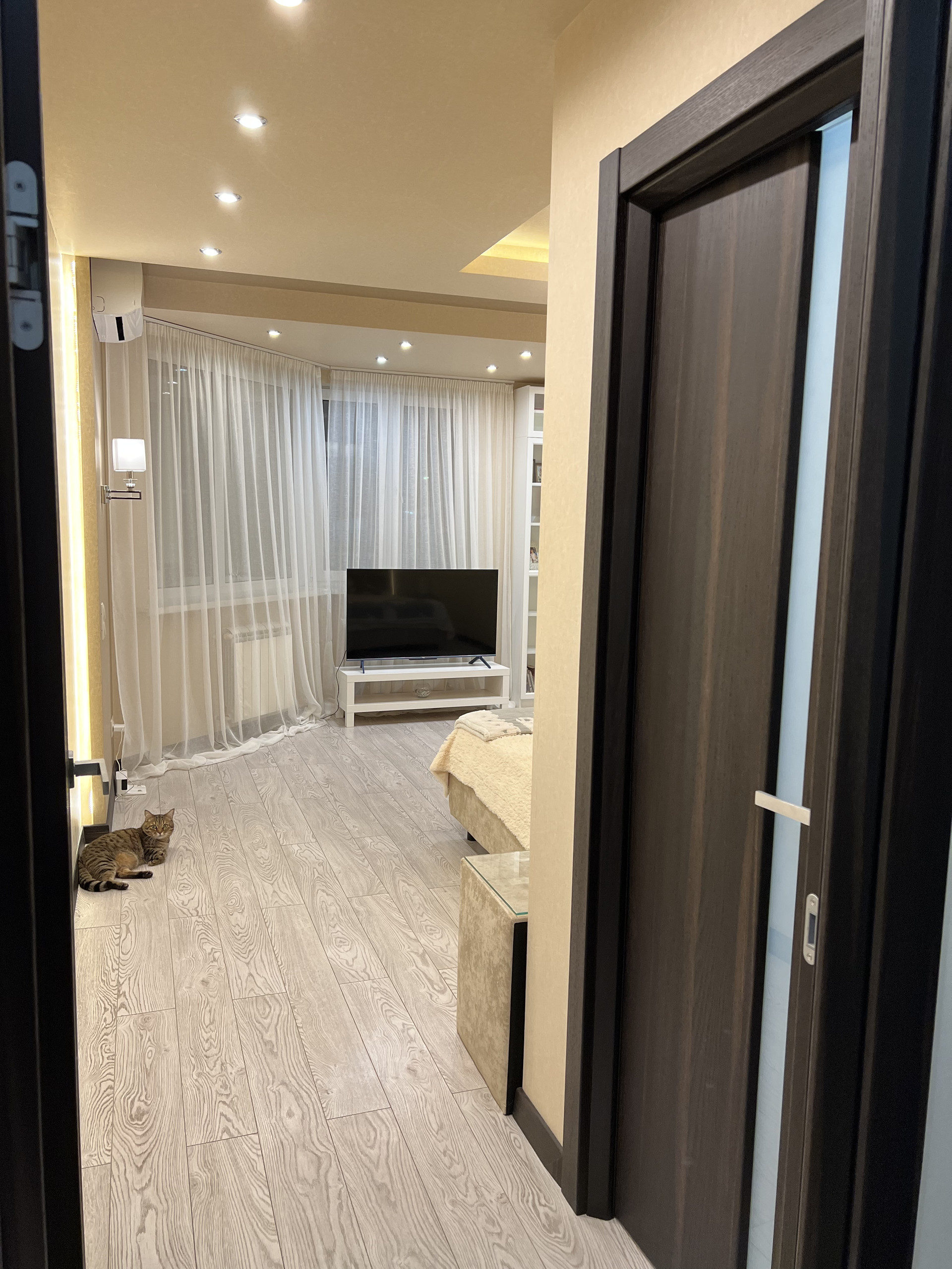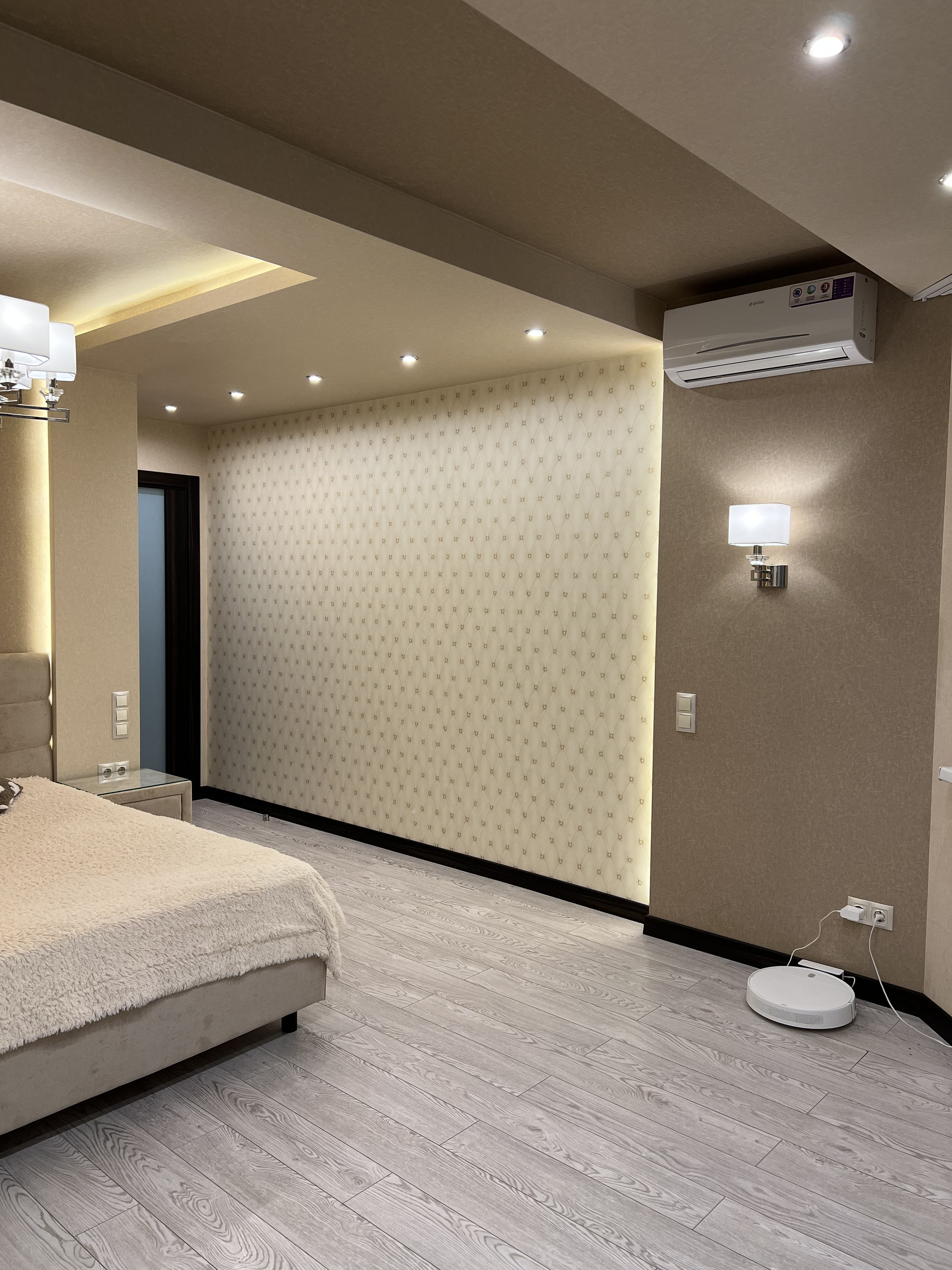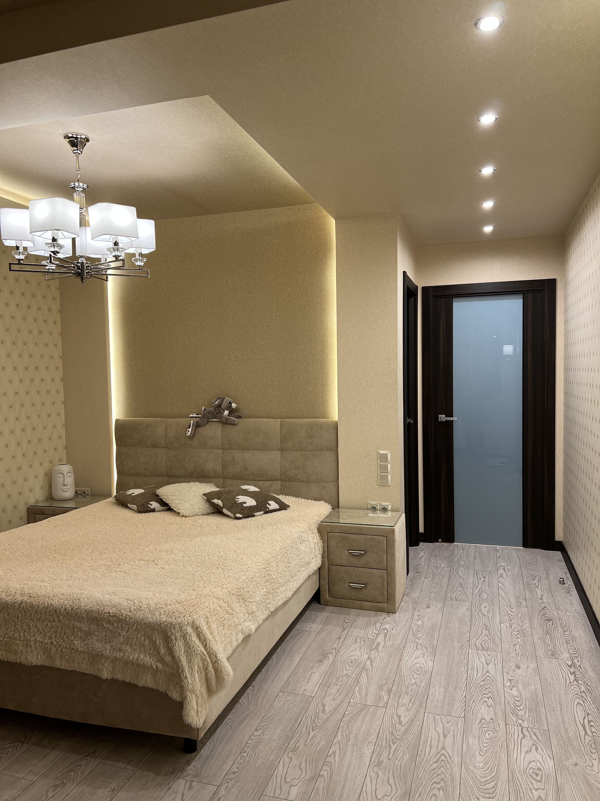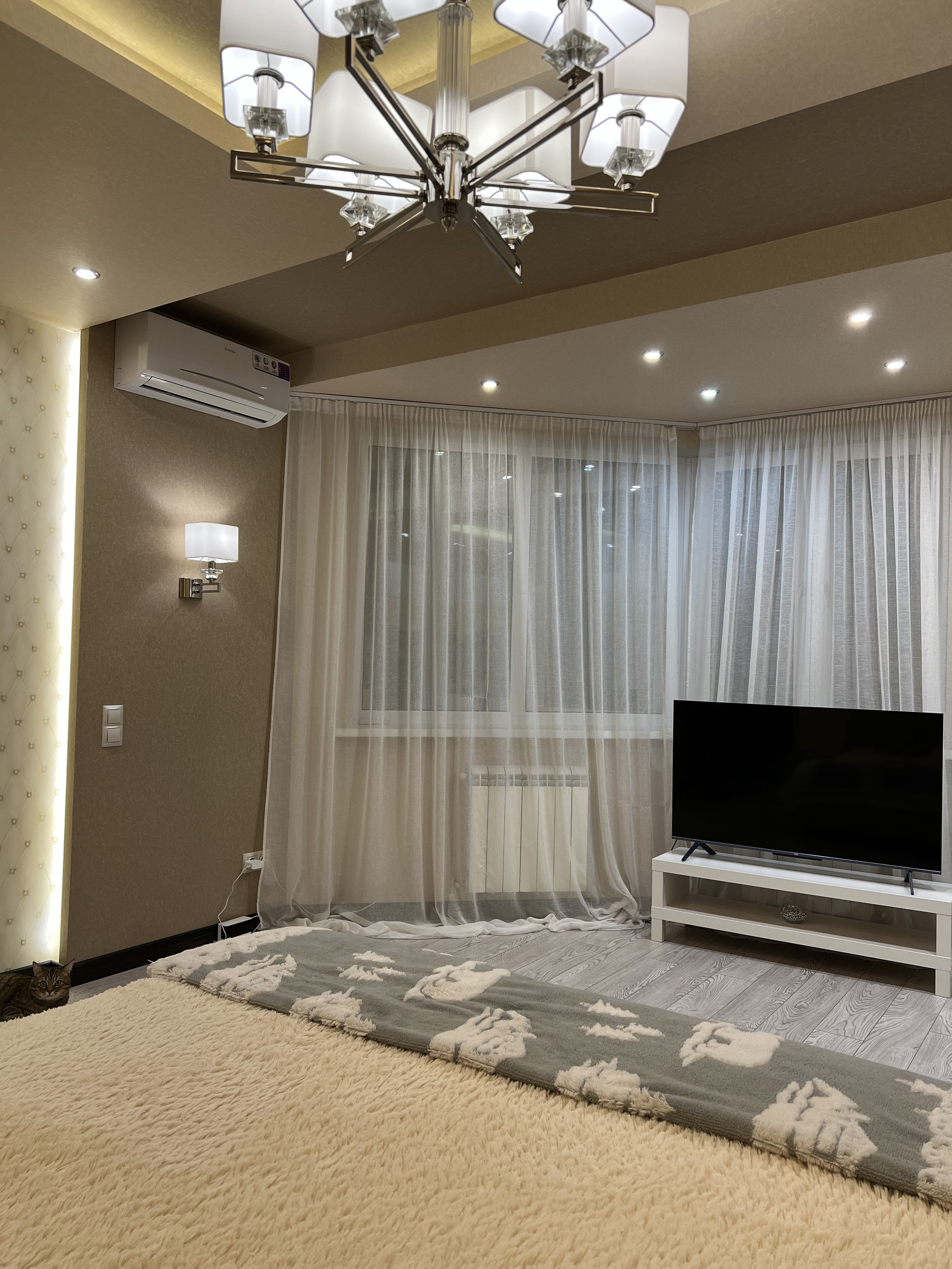 Просторная светлая квартира. Удобная планировка по дизайн проекту. Просторная кухня, большая гостиная с кондиционером, практичная достаточно большая гардеробная, холл с широким зеркалом от пола до потолка, ванная комната совмещена с санузлом, полноразмерная ванная. Различные варианты освещения, создают уютную домашнюю атмосферу. Кухня фирмы «Мария» с хорошей встроенной техникой (стиральная машина, холодильник, духовой шкаф, варочная панель, фильтр воды, скрытая вытяжка над варочной панелью. Двери и плинтуса фирмы «Софья».