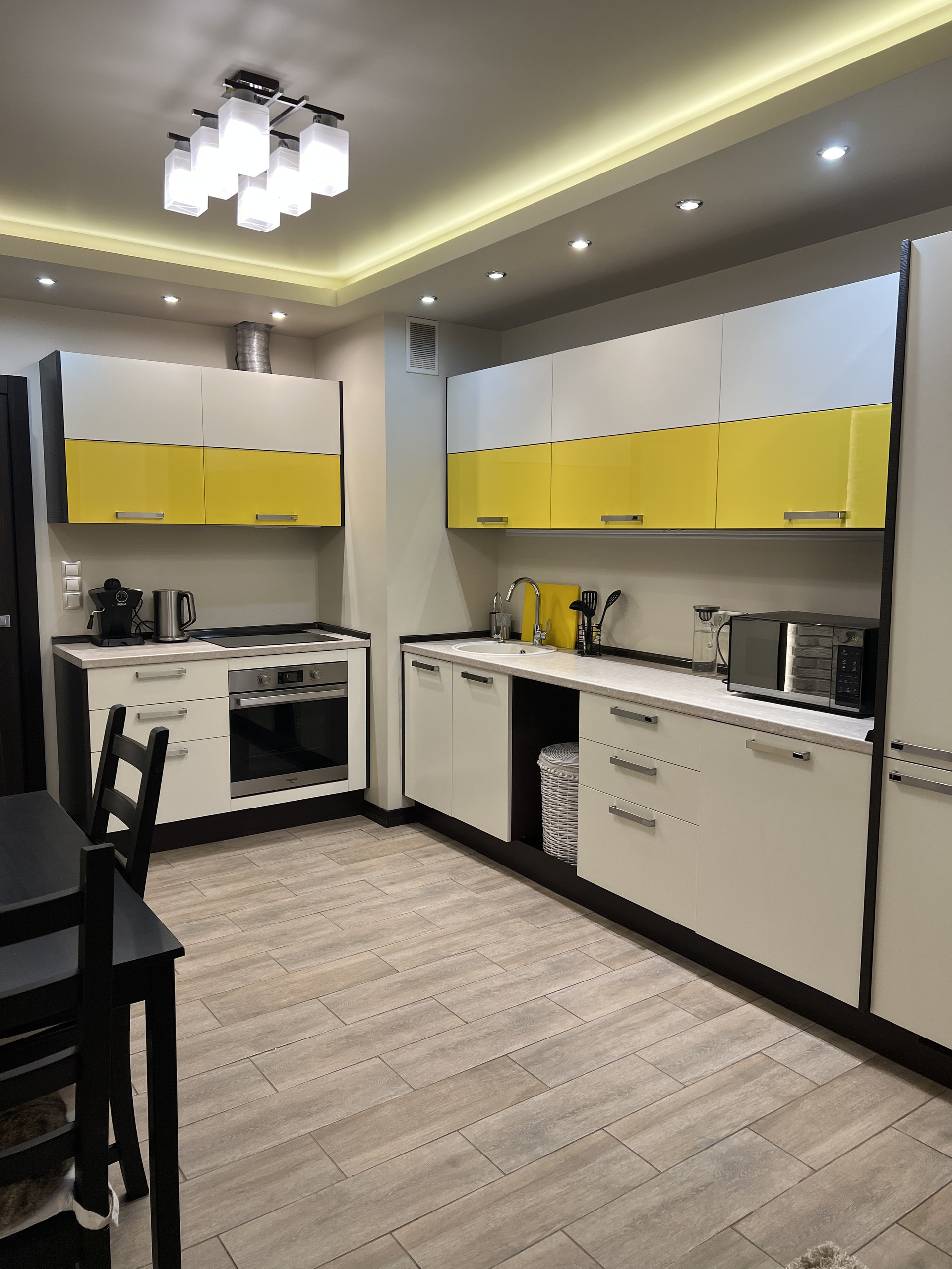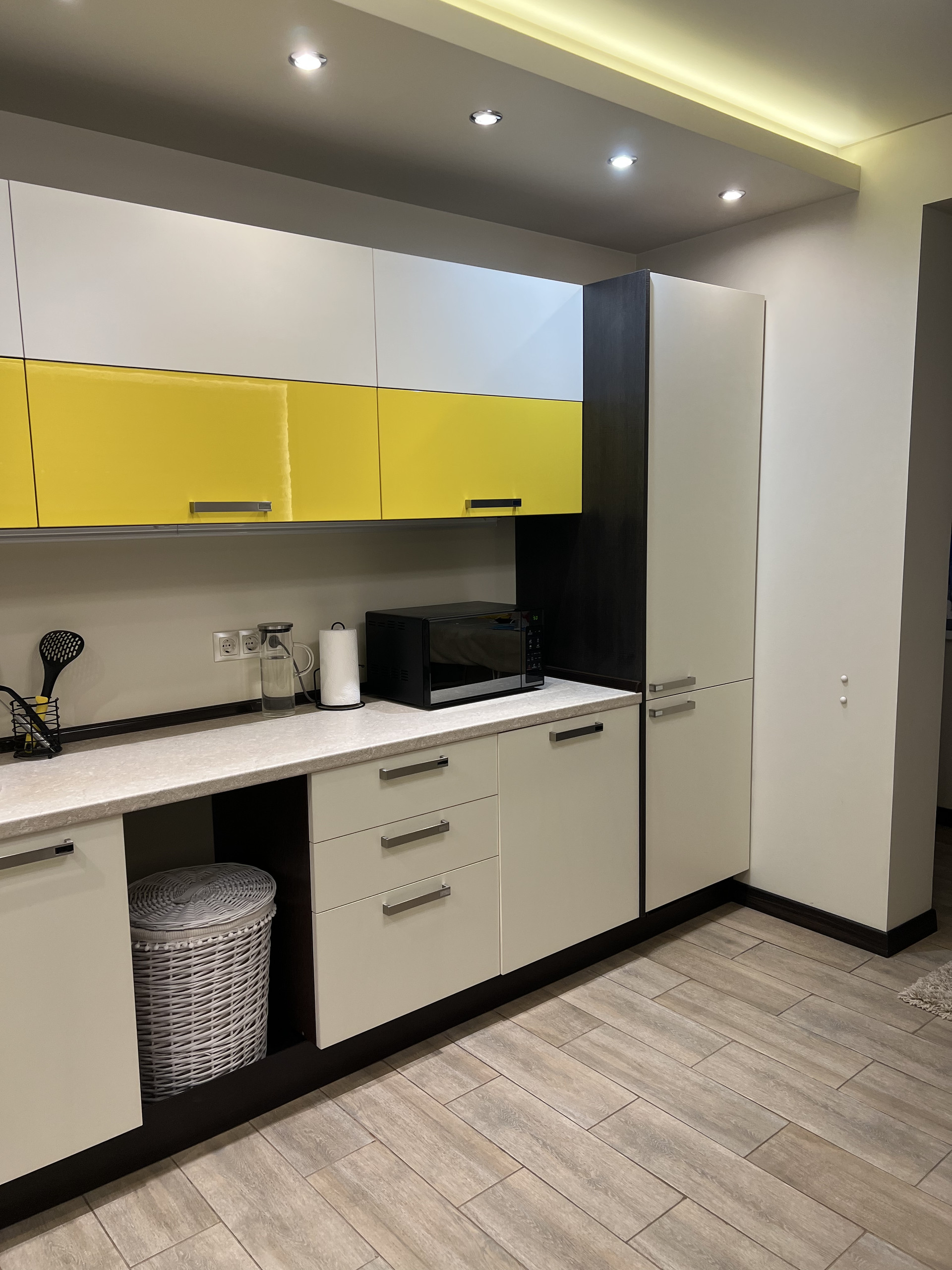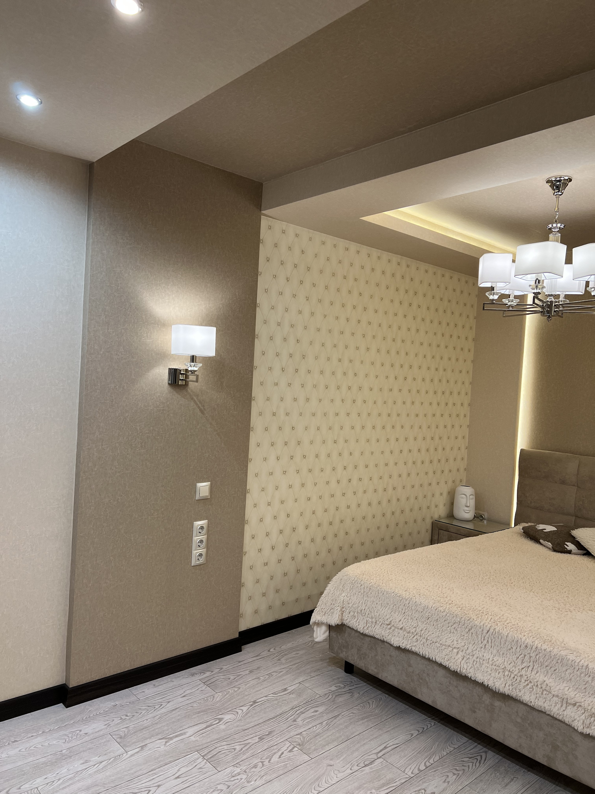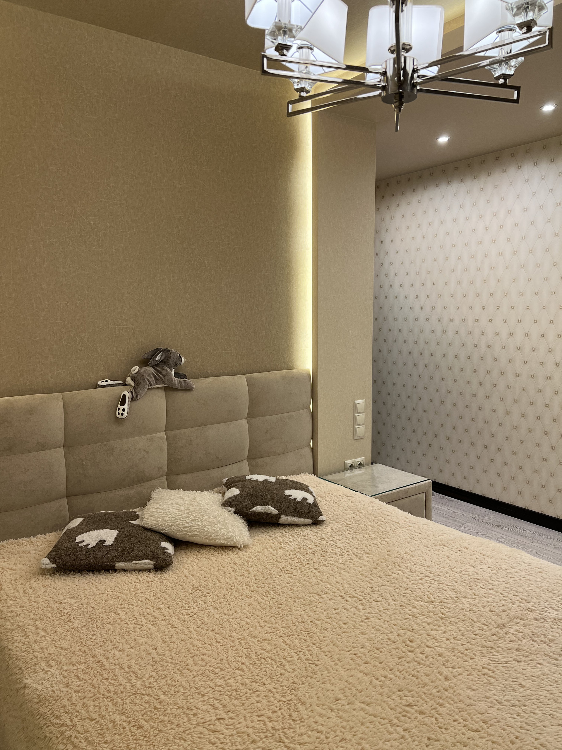 Просторная светлая квартира. Удобная планировка по дизайн проекту. Просторная кухня, большая гостиная с кондиционером, практичная достаточно большая гардеробная, холл с широким зеркалом от пола до потолка, ванная комната совмещена с санузлом, полноразмерная ванная. Различные варианты освещения, создают уютную домашнюю атмосферу. Кухня фирмы «Мария» с хорошей встроенной техникой (стиральная машина, холодильник, духовой шкаф, варочная панель, фильтр воды, скрытая вытяжка над варочной панелью. Двери и плинтуса фирмы «Софья».