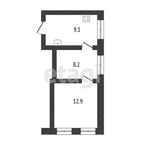 В историческом центре города Самары продаётся двухкомнатная квартира на втором этаже двухэтажного дома. Общая площадь квартиры 30.2 кв.м.: комнаты 12.9 и 8.2 кв.м , кухня 9.1 кв.м.