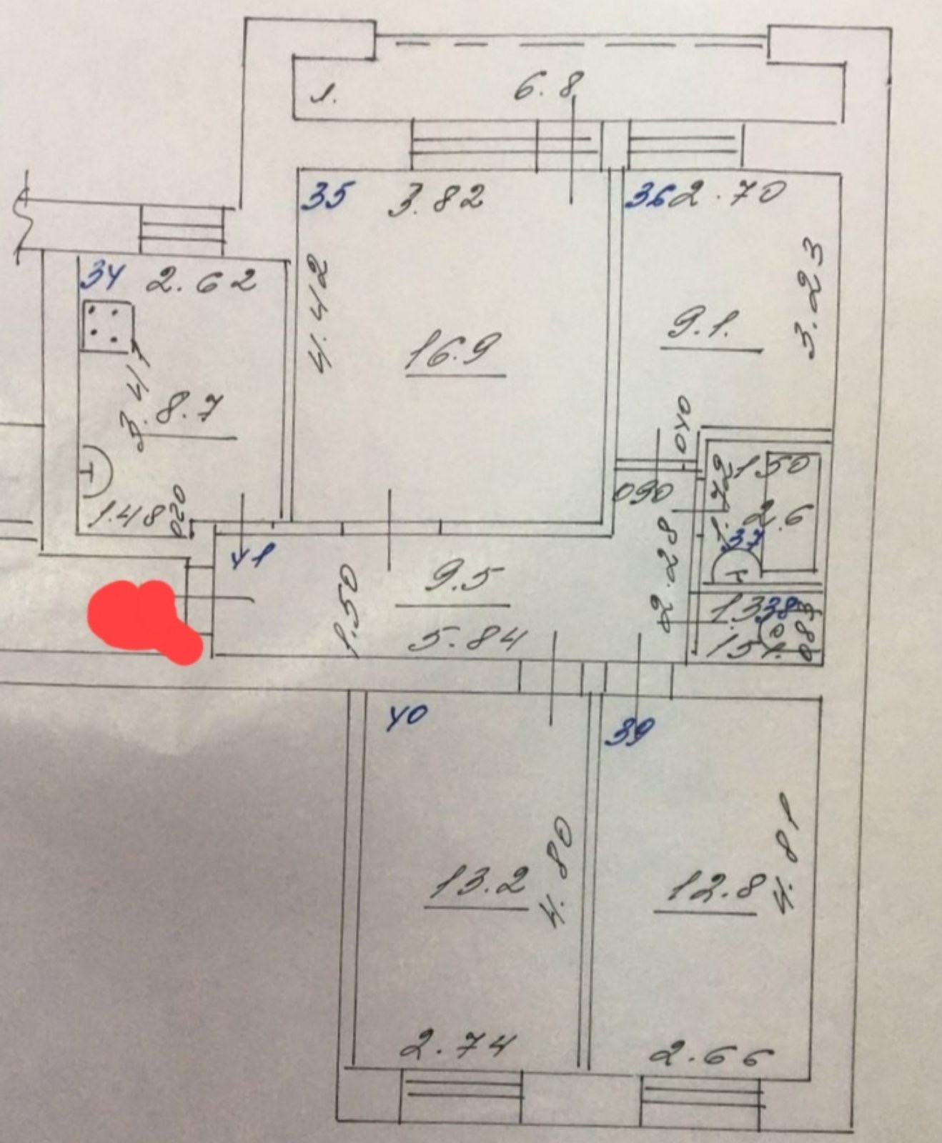 - Четырехкомнатная квартира с  функциональной планировкой: просторный коридор 9,5 кв.м., кухня 9 кв.м. с кухонным гарнитуром, зал 16,9 кв.м. со сплит-системой, с выходом на остекленную лоджию 6,8 кв.м; комната 9,1 кв.м., комната 12,8 кв.м., комната 13,2 кв.м., окна выходят на две стороны. Раздельный сан. узел, полностью поменена система отопления,  стеклопакеты. Не угловая. Счётчики воды. Отличный вид на город!