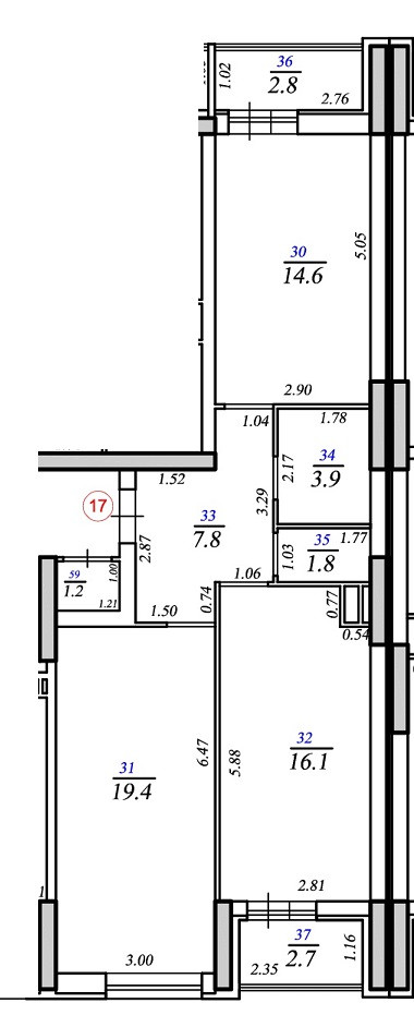 Площадь кухни 16.1 м2