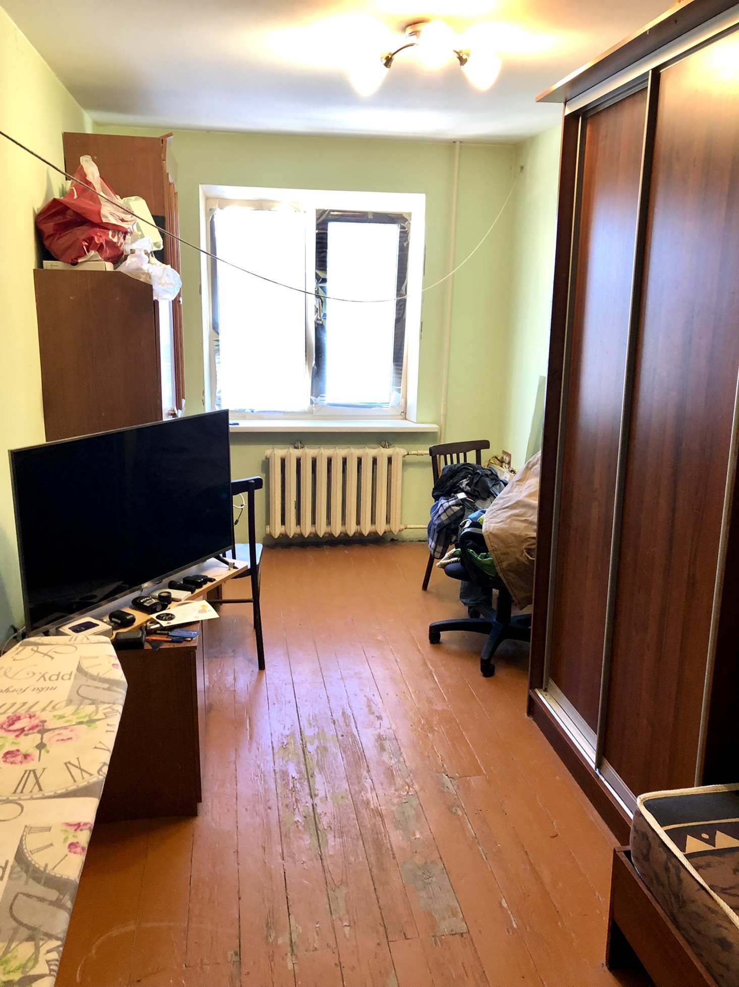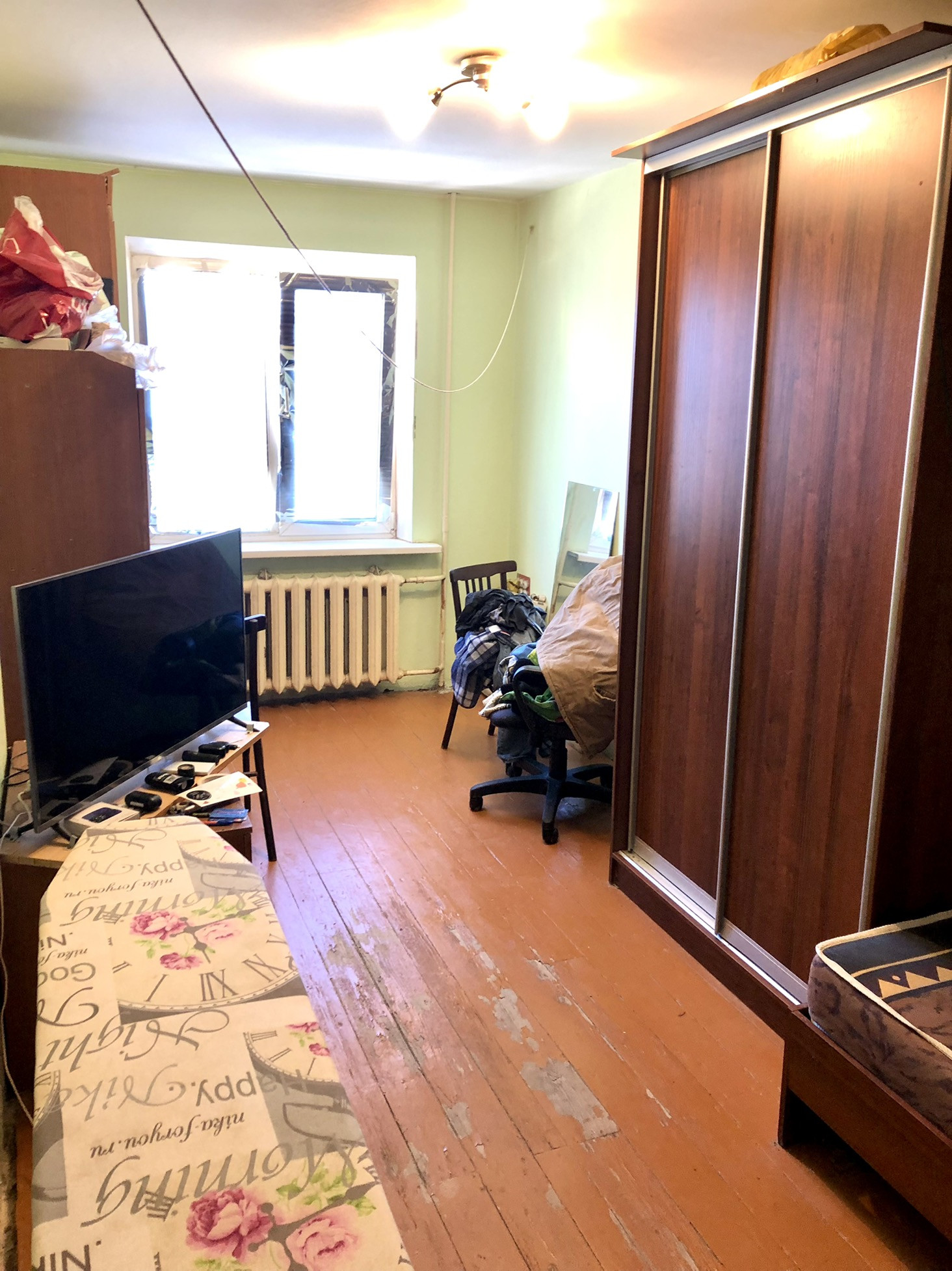 2 раздельные комнаты: 18 и 12 м2. Квадратная кухня, совмещенный с/у. Большой застекленный балкон. В квартире качественный чистовой ремонт. Новая электропроводка, установлено 2 новых радиатора, пластиковые окна, поменяна канализация. Выровнены стены. Квартира светлая. Окна во двор, солнце с утра. Чистый подъезд. Крыша в идеальном состоянии. Этаж последний, поэтому никто вас не побеспокоит шумом сверху.