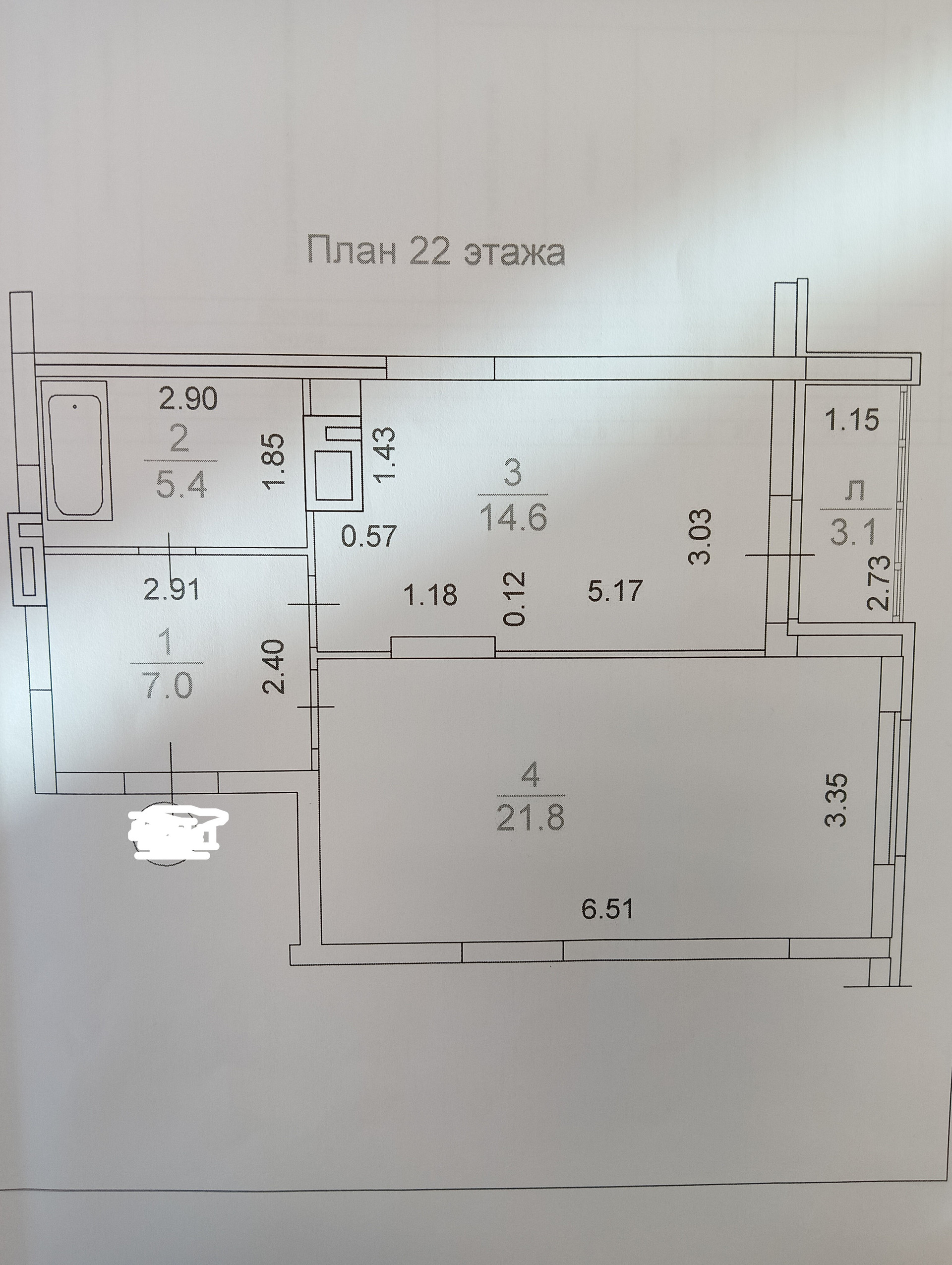 Жилая площадь 21.8 м2