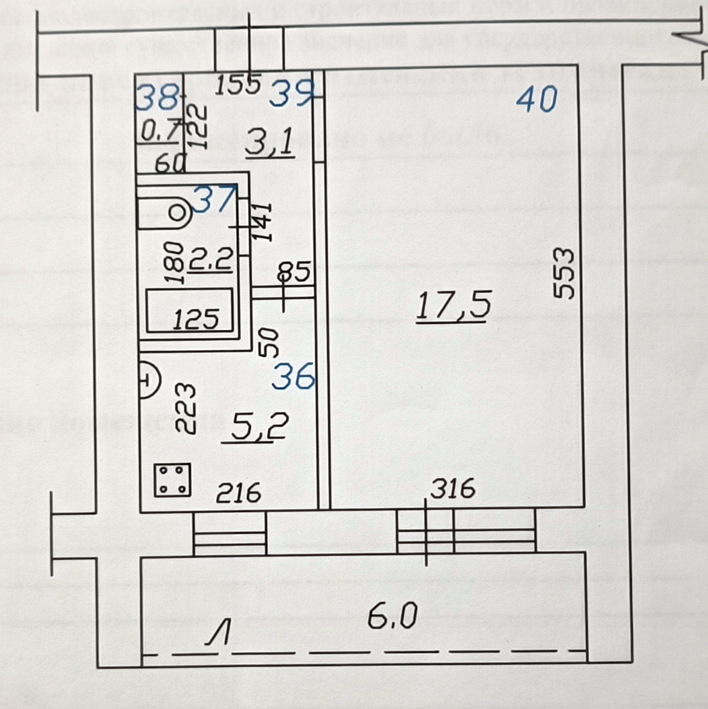 Площадь кухни 5.2 м2