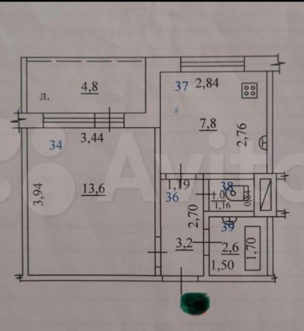 Общая площадь 30.6 м2