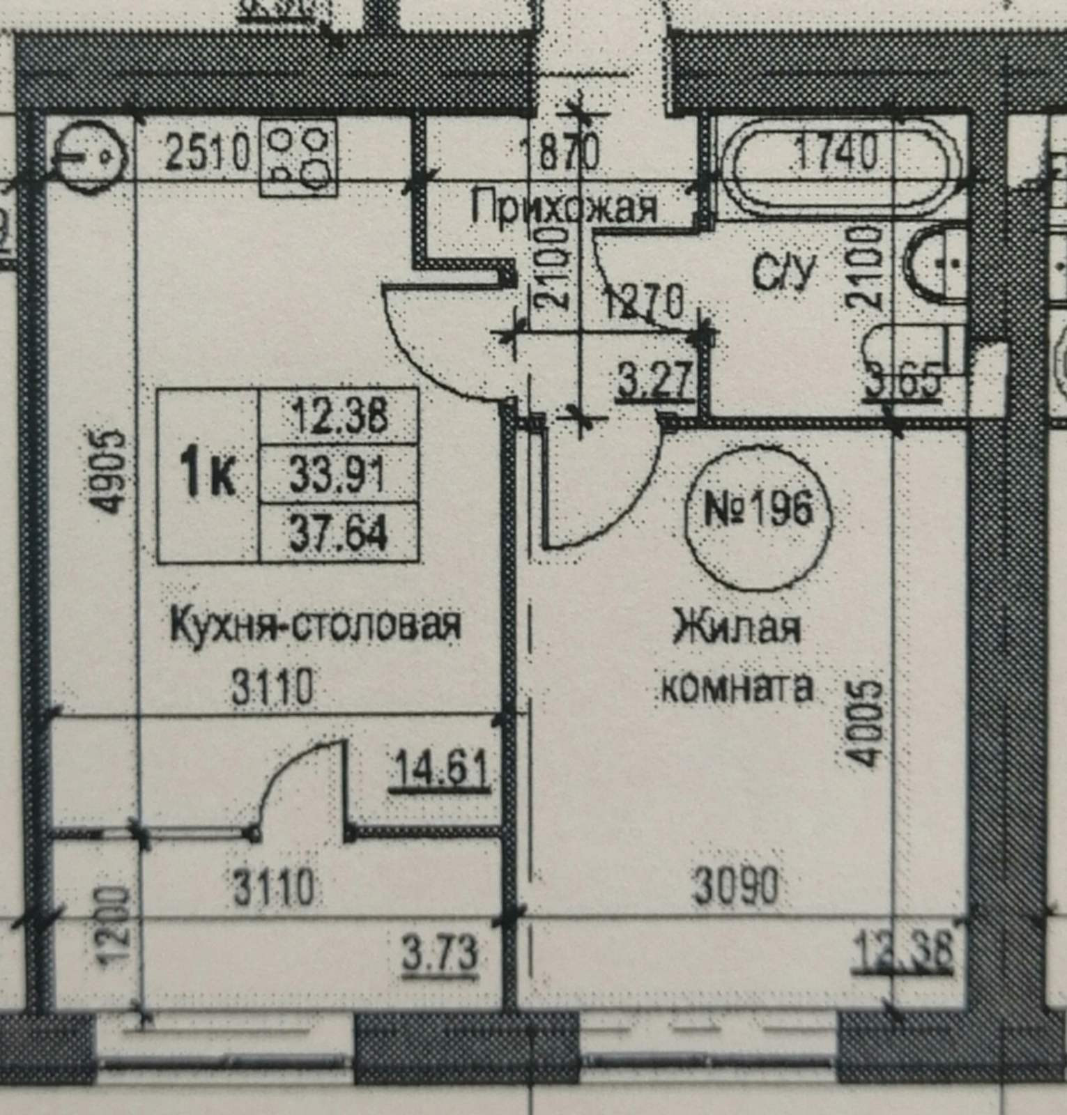 Общая площадь 37.3 м2