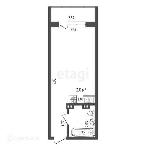 Площадь кухни 3 м2